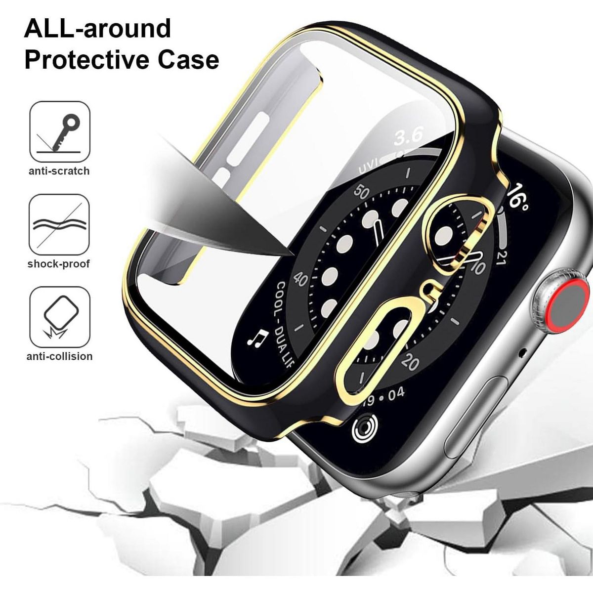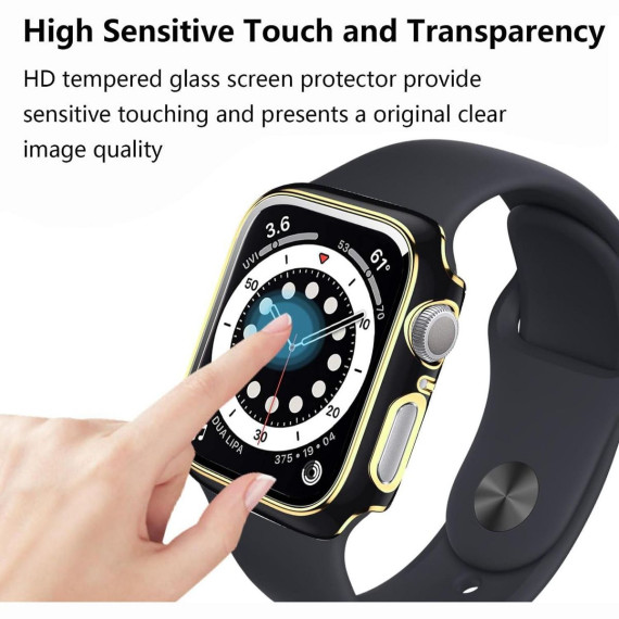 Worryfree Gadgets Bumper Case with Screen Protector for Apple Watch 45mm, Black/Gold - 45MM
