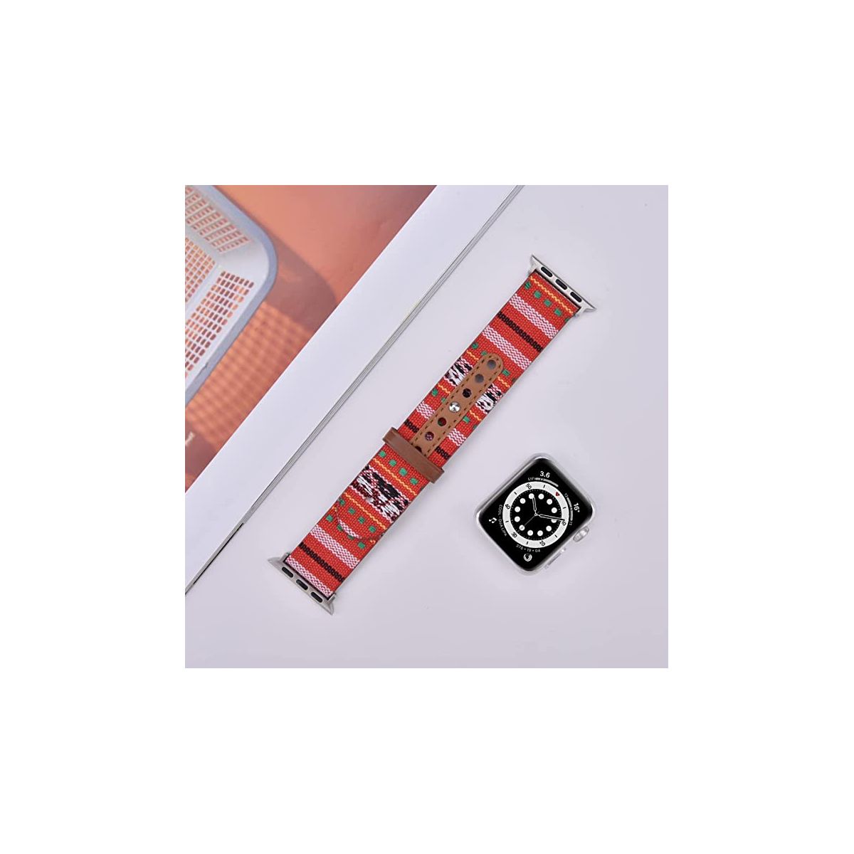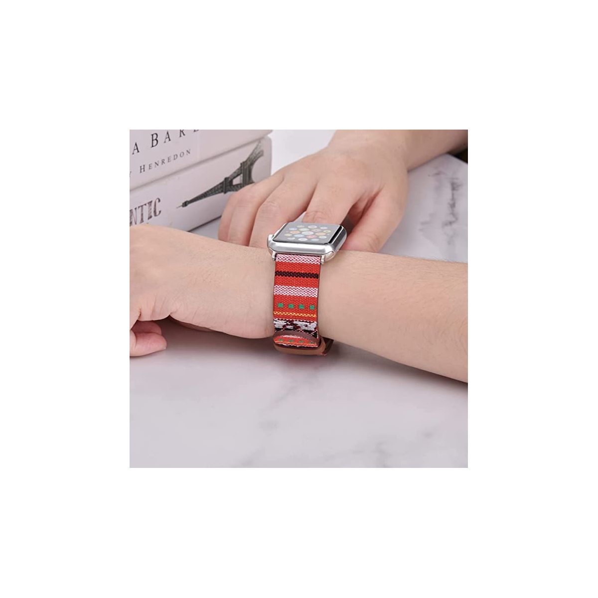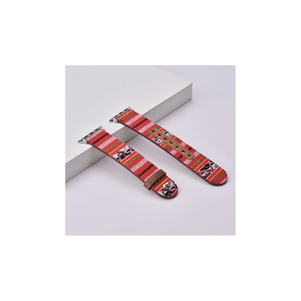 Compatible with Apple Watch Bands Soft comfortable lightweight Canvas and Leather strap, meticulous tailoring process is no irritation on the skin. This Unisex Apple Watch Strap is perfect for your family and friends. Compatible iWatch Series: 8, 7, 6, 5, 4, 3, 2, 1 & SE Compatible iWatch Band Size: 38mm, 40mm, 41mm and 42mm, 44mm, 45mm, 49mm Made of premium quality fabric nylon materials by knitting craftsmanship?the part that touches the wrist is the leather material, ensure a comfortable and breathable feeling. Ethnic style is the best companion in daily time and outdoor sports activity. The wrist size can be freely adjusted with multiple alternative 7 holes, providing the best wearing experience. Stainless steel nail provides a simple yet elegant look. Lightweight nylon wristband with textured finishing dresses up your Smart Watch.