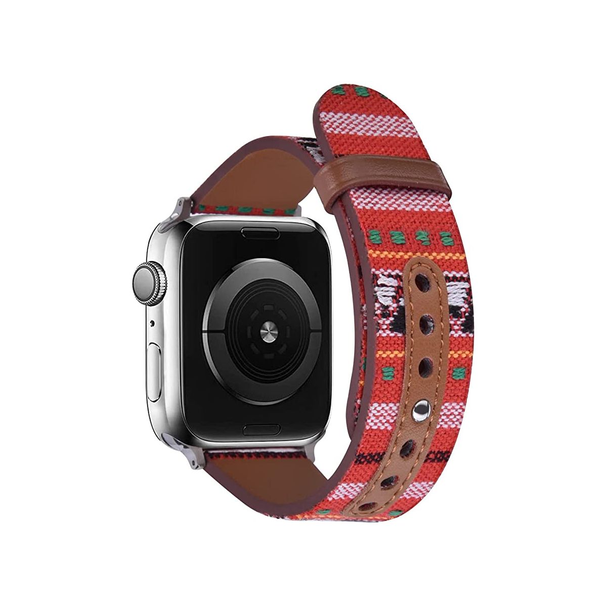 Worryfree Gadgets Canvas Leather Band for Apple Watch 38/40/41mm, 42/44/45mm iWatch Series 8 7 6 SE 5 4 3 2 1 - 38/40/41mm - Red