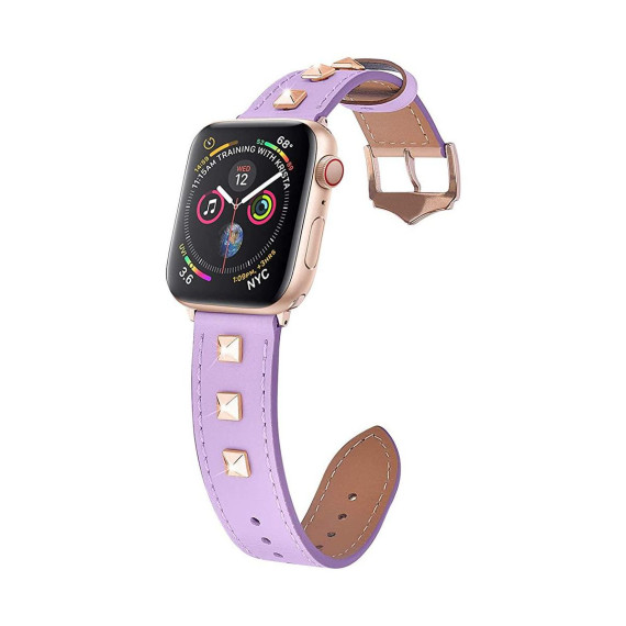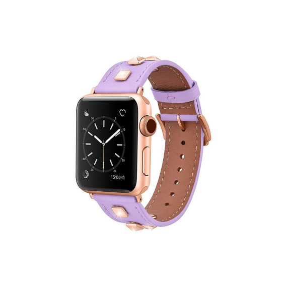 Worryfree Gadgets Dressy Leather Apple WatchBand, Band for iWatch Series 8 7 6 5 4 3 2 1 Genuine Leather Replacement Band Smart - 38/40/41mm - Purple