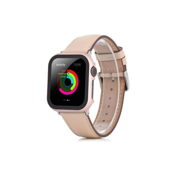 Worryfree Gadgets Electroplated Metal Bumper with Tempered Glass Screen Protector for Apple Watch 38mm, Rose Gold - 38mm