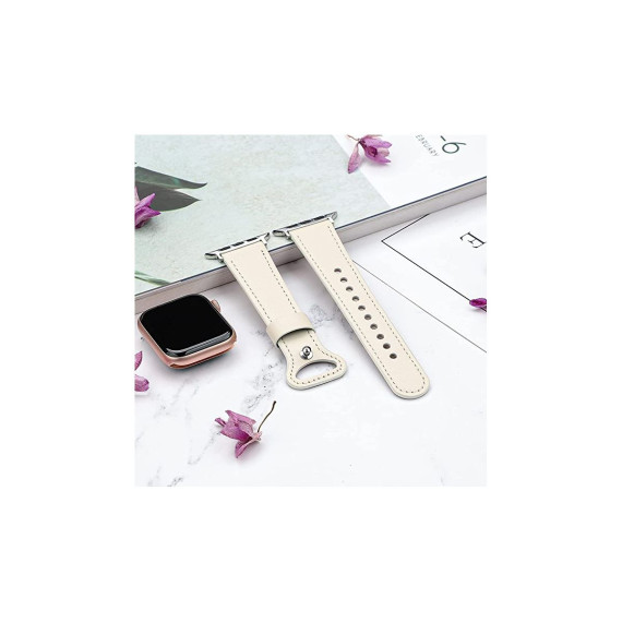 Worryfree Gadgets Leather Band for Apple Watch 38/40/41mm, 42/44/45mm iWatch Band Series 8 7 6 5 4 3 2 1 & SE - 42/44/45mm - Beigh White