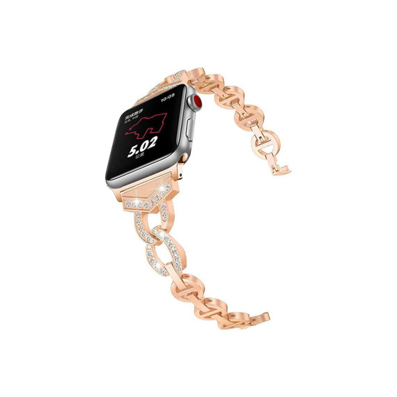 Worryfree Gadgets Metal Band for Apple Watch 38/40/41mm Sleek O-Links with Full Bling Rhinestones-Rose Gold