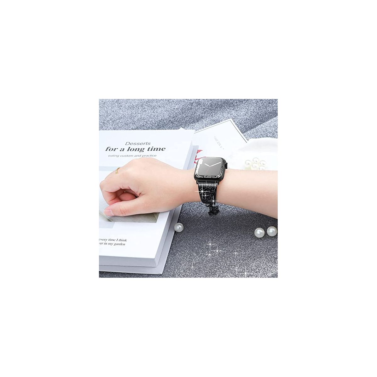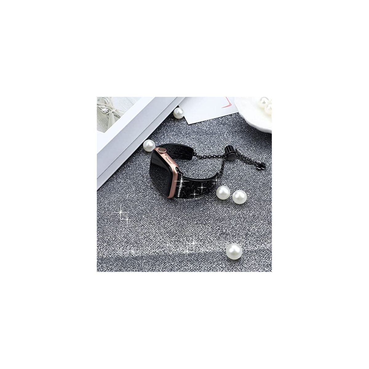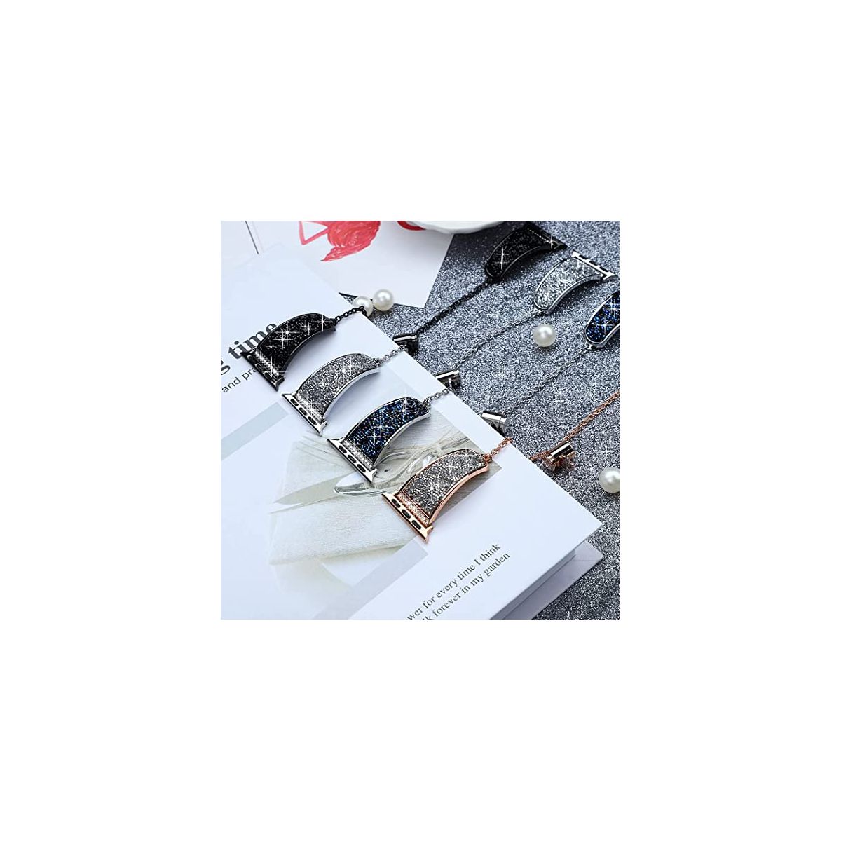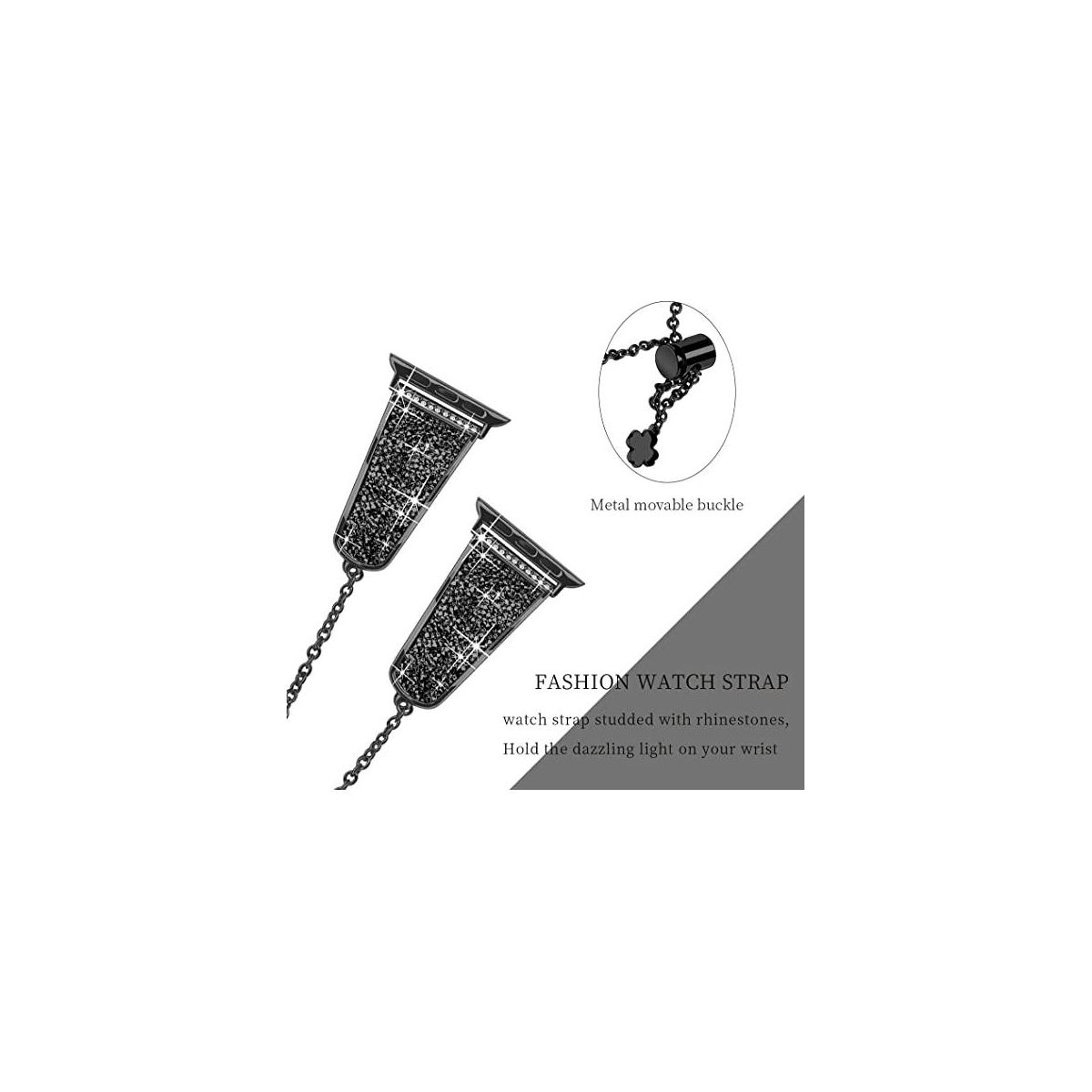 "Crystals never comes off- With advanced adhesive process, the crystals are permanently glued on the band and will never come off. Made of premium stainless steel with fine polish, unique color, beautiful and luxurious, smooth, breathable, and comfortable to wear. No sharp edges at all. Give yourself a gift with the Worryfree Gadget metal blink apple watch band.