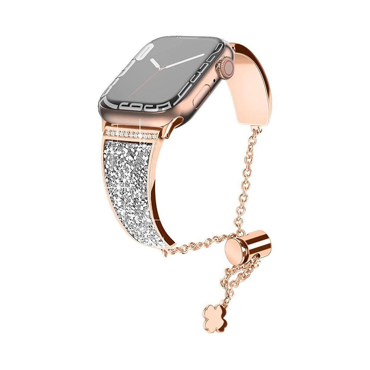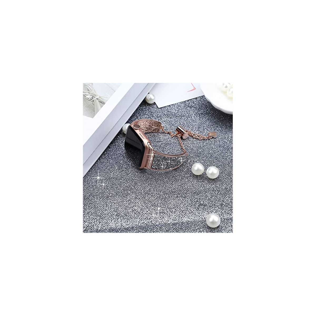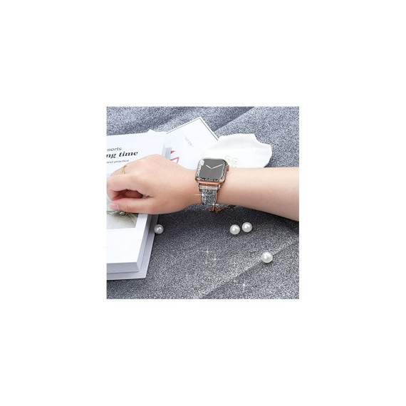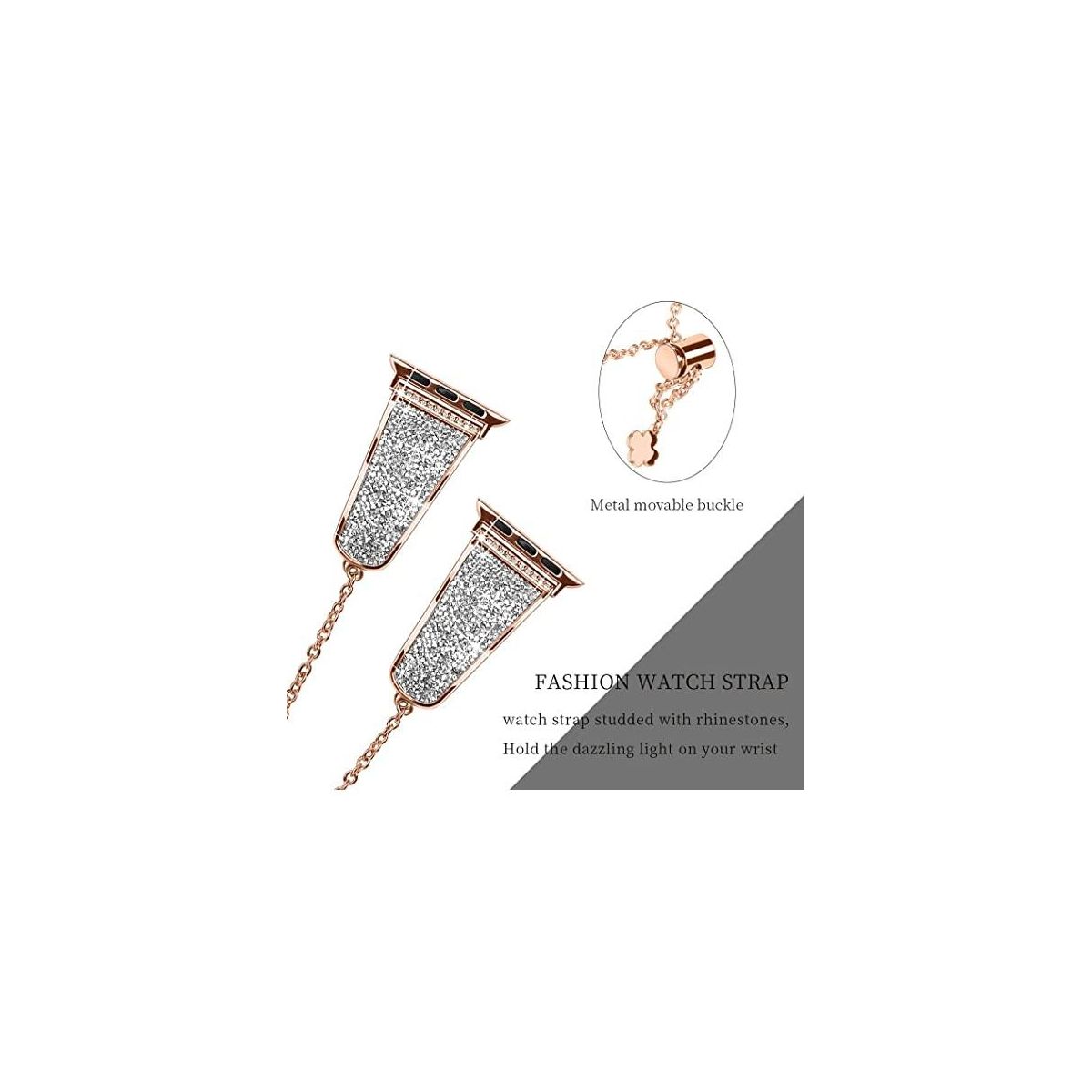 "Crystals never comes off- With advanced adhesive process, the crystals are permanently glued on the band and will never come off. Made of premium stainless steel with fine polish, unique color, beautiful and luxurious, smooth, breathable, and comfortable to wear. No sharp edges at all. Give yourself a gift with the Worryfree Gadget metal blink apple watch band.