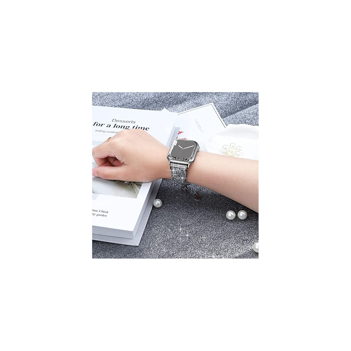 "Crystals never comes off- With advanced adhesive process, the crystals are permanently glued on the band and will never come off. Made of premium stainless steel with fine polish, unique color, beautiful and luxurious, smooth, breathable, and comfortable to wear. No sharp edges at all. Give yourself a gift with the Worryfree Gadget metal blink apple watch band.