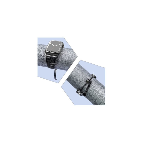 "Crystals never comes off- With advanced adhesive process, the crystals are permanently glued on the band and will never come off. Made of premium stainless steel with fine polish, unique color, beautiful and luxurious, smooth, breathable, and comfortable to wear. No sharp edges at all. Give yourself a gift with the Worryfree Gadget metal blink apple watch band.