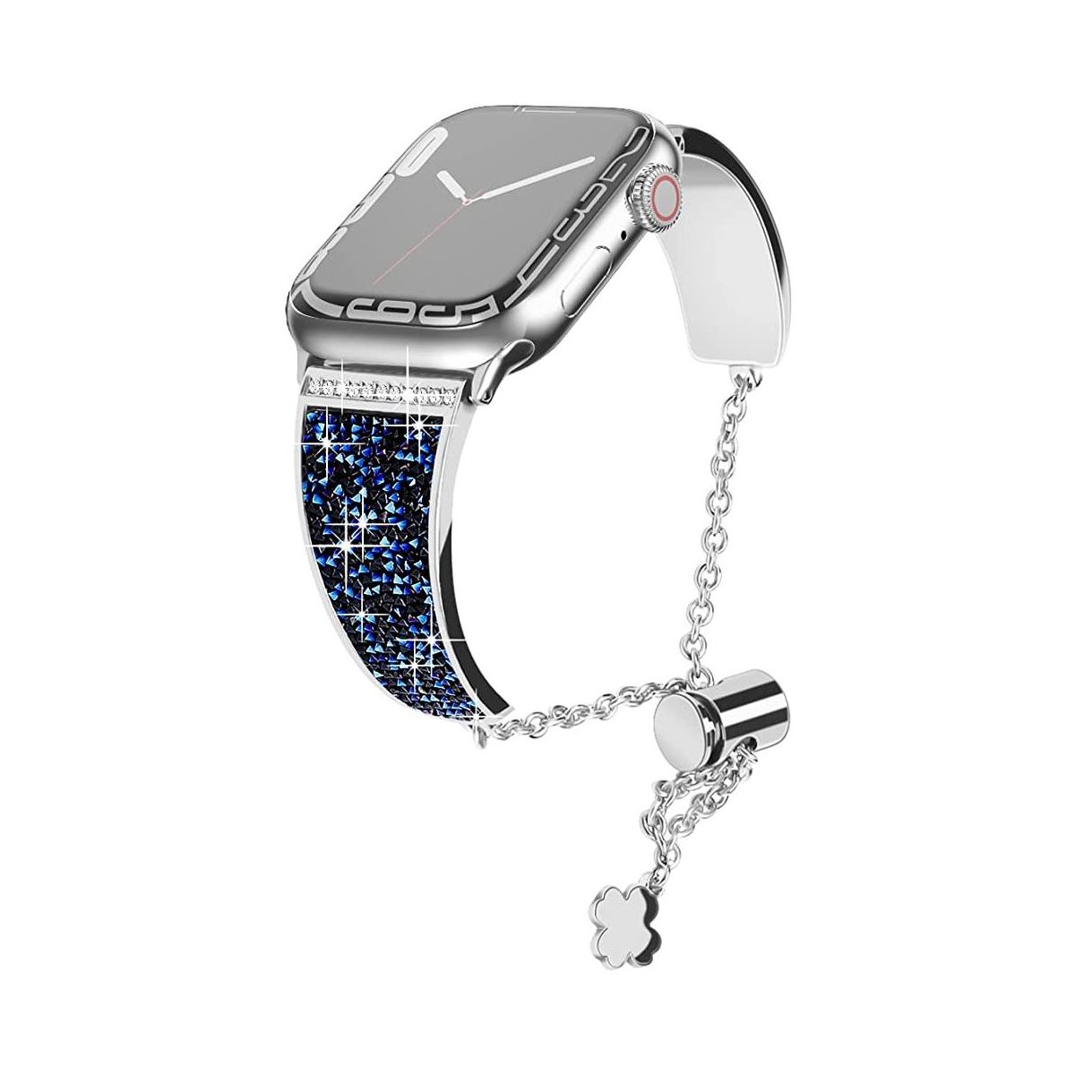 "Crystals never comes off- With advanced adhesive process, the crystals are permanently glued on the band and will never come off. Made of premium stainless steel with fine polish, unique color, beautiful and luxurious, smooth, breathable, and comfortable to wear. No sharp edges at all. Give yourself a gift with the Worryfree Gadget metal blink apple watch band.