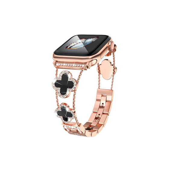 Worryfree Gadgets Metal Bling Band for Apple Watch Flower Design 38/40/41mm, Black Flower/Rose Gold
