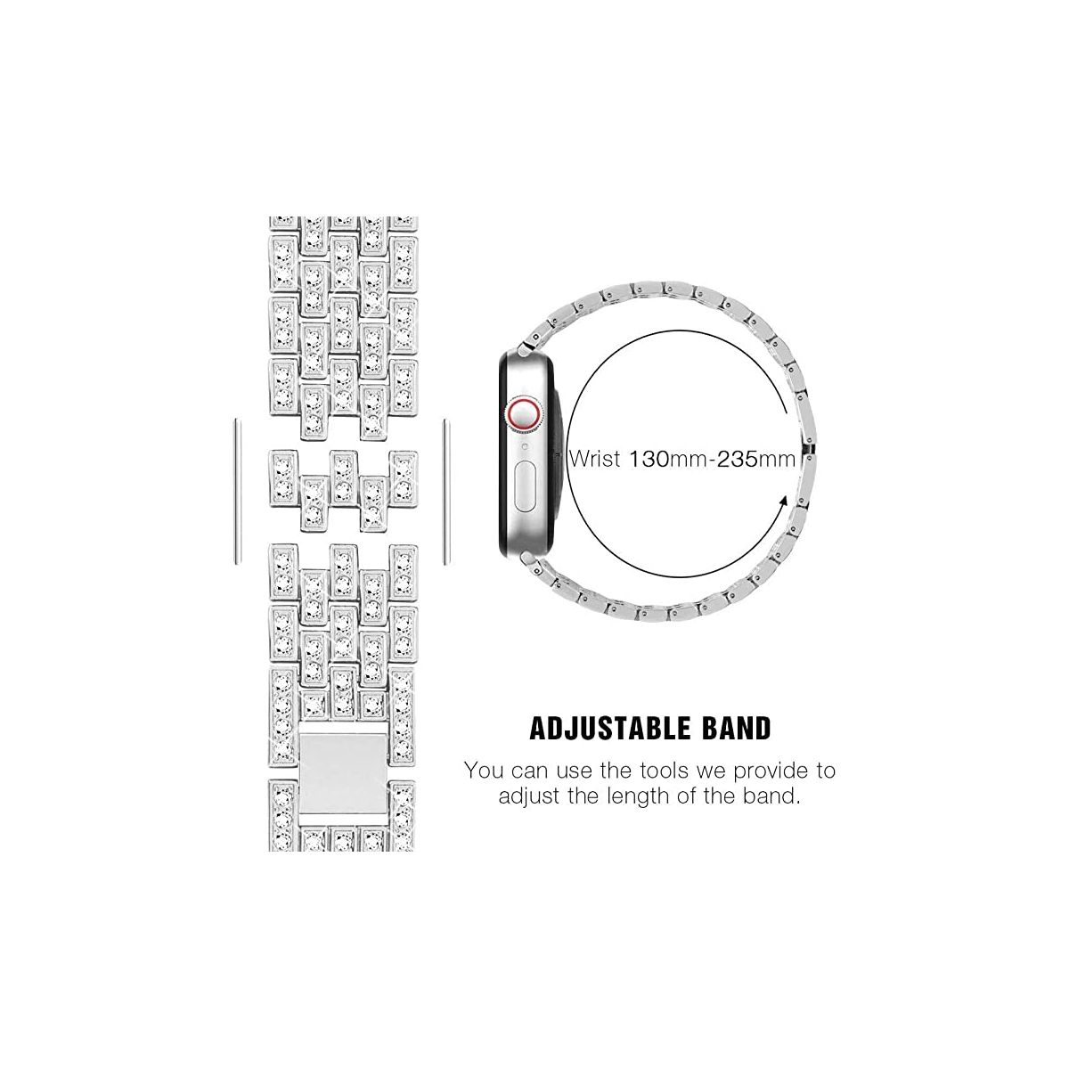 Worryfree Gadgets Alloy Metal Adjustable Fashion Diamond Design Band Compatible with Apple Watch Compatible Size: 38mm/40mm/41mm and 42mm/44mm/45/49mm. Compatible Apple Watch strap Series: Ultra Series 8 Series 7, Series 6, Series 5, Series 4, Series 3, Series 2, Series 1, and Series SE Compatible Model: Bling Alloy metal watch band is compatible with apple watch strap 38mm 40mm 41mm and 42mm 44mm 45mm 49mm.Please carefully check your watch model and select the corresponding size before ordering.