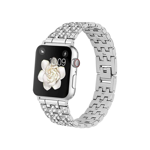 Worryfree Gadgets Metal Bling Fashion Band for Apple Watch 38/40/41mm, 42/44/45mm iWatch Band Series 8 7 6 5 4 3 2 1 & SE - 38/40/41mm - Silver