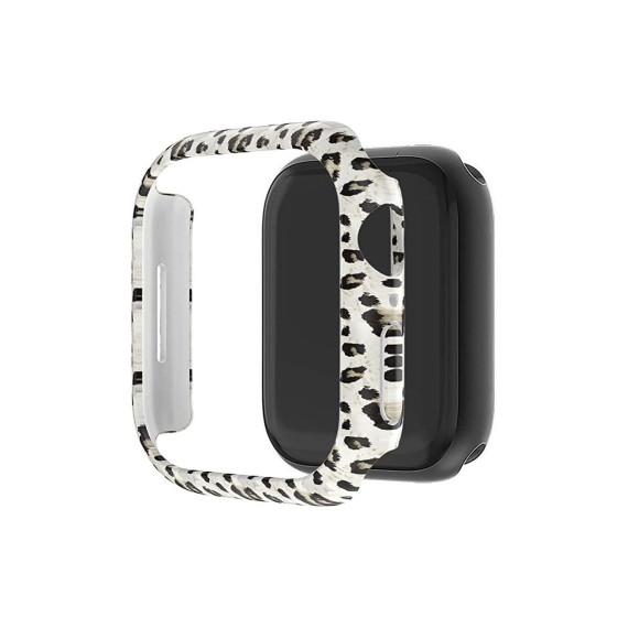 Worryfree Gadgets Protective Bumper Case with Glass Screen Protector Compatible with Apple Watch 38mm, White Leopard
