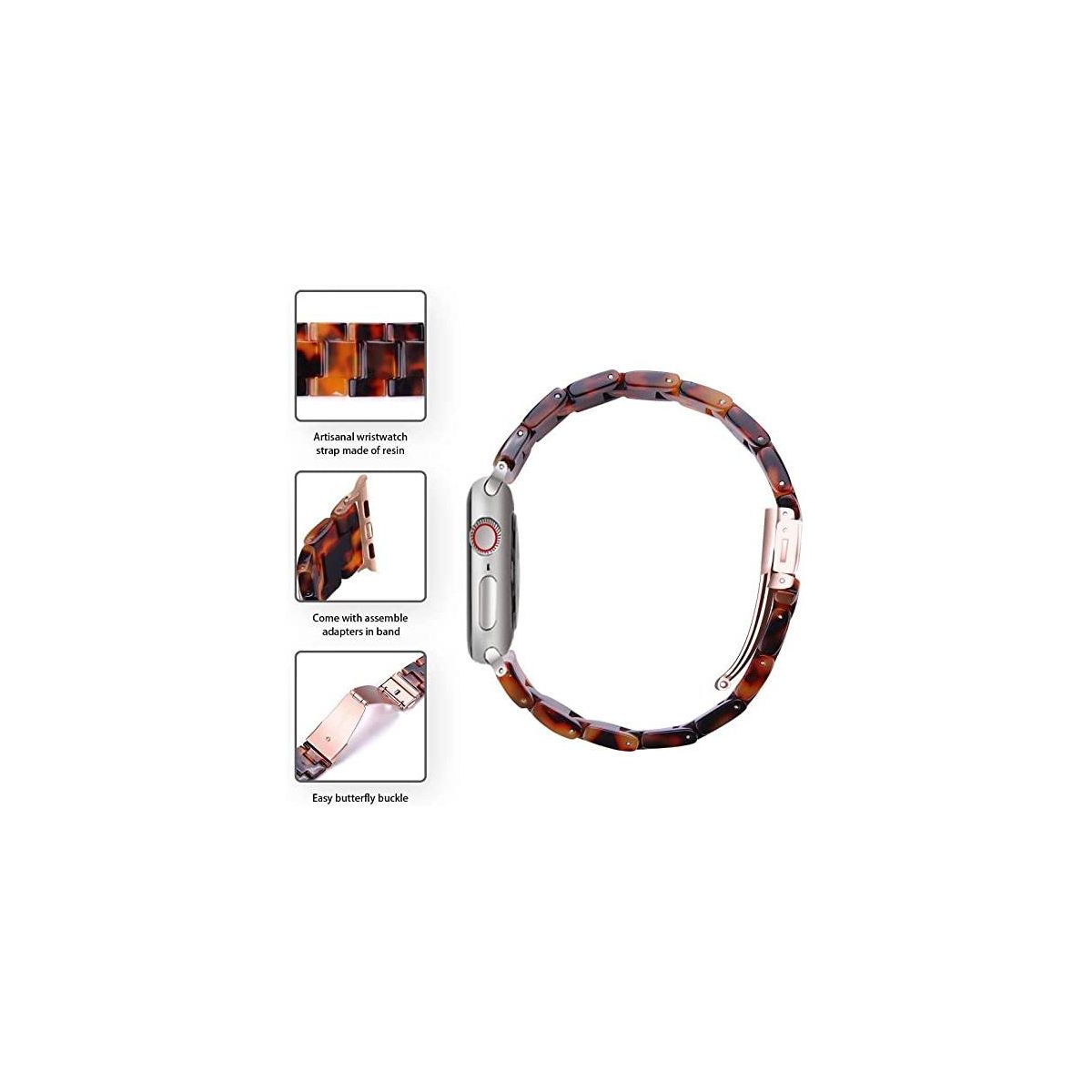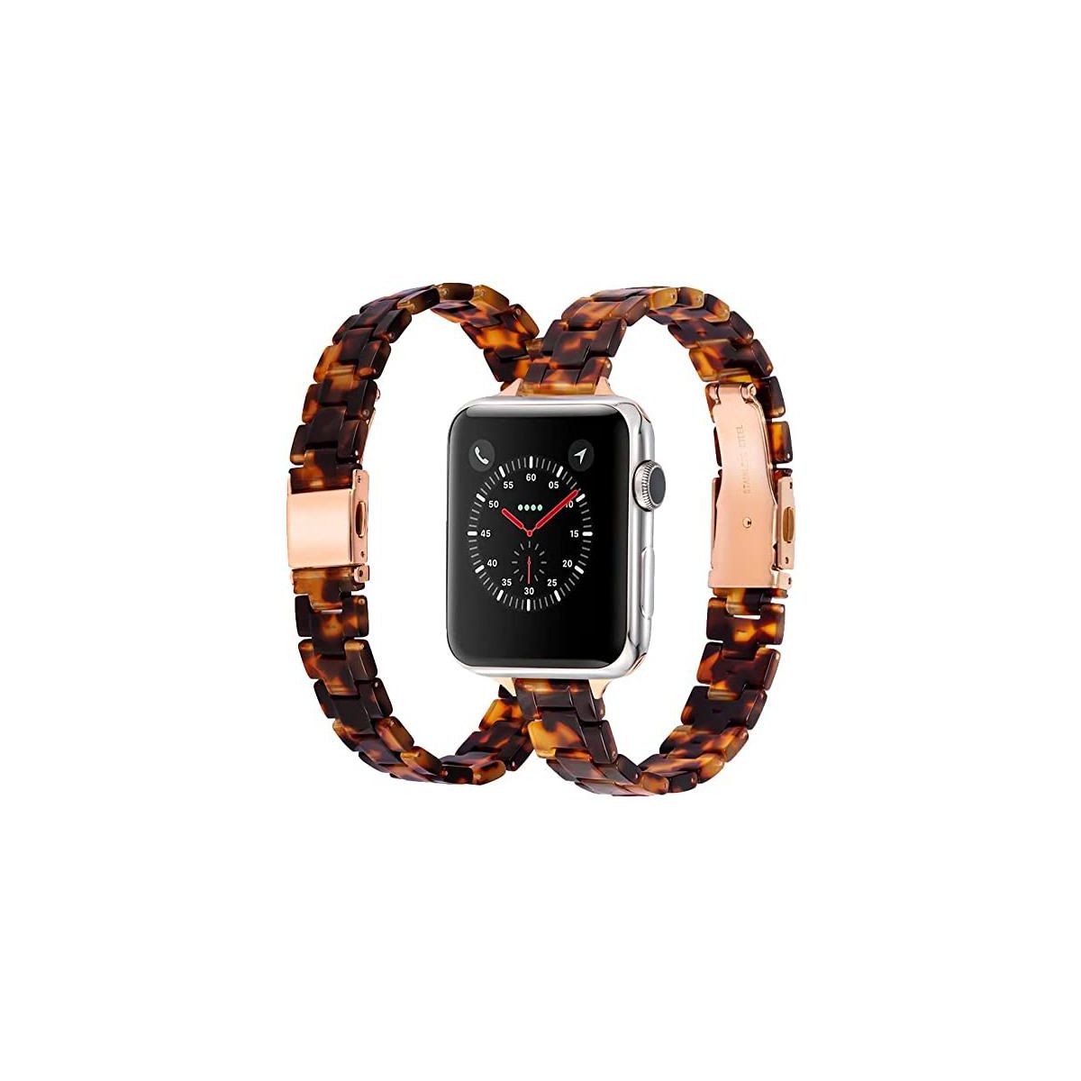 Worryfree Gadgets Resin Band for Apple Watch 42/44/45/49mm with Butterfly Buckle Claps-Tortoise Shell Design - Brown Tortoise