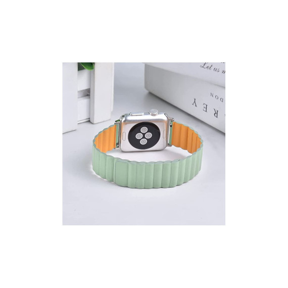 Reversible magnetic Leather band for Apple Watch Series 8 7 6 5 4 3 2 1 and SE. Magnetic strap is made Genuine Leather, which will help to hold your iWatch secure with clasp. The replacement strap made of high quality leather which is lightweight, wear-resistant and scratch-resistant, soft and comfortable. Soft leather material provides comfortable and cool feeling for your wrist. Special design for Apple Watch: New stylish design without buckle or hook. Two part of powerful magnetic iWatch straps hold together tightly which allows wearing your Apple Watch easily and quickly. The high quality genuine leather materials makes it anti-scratching and not easily damaged.
