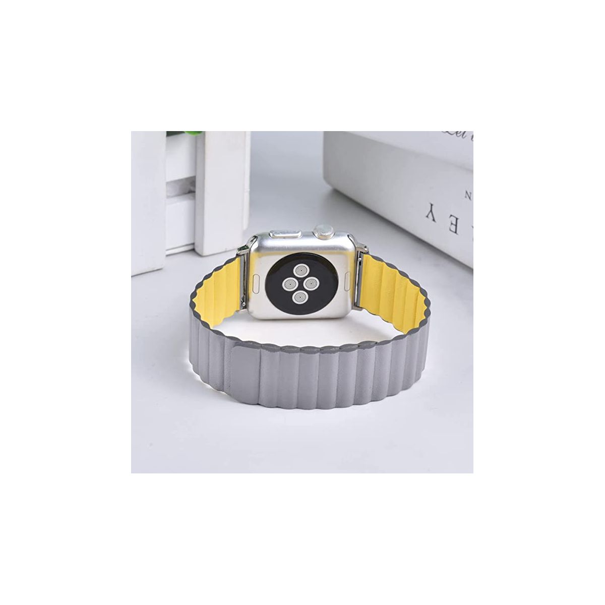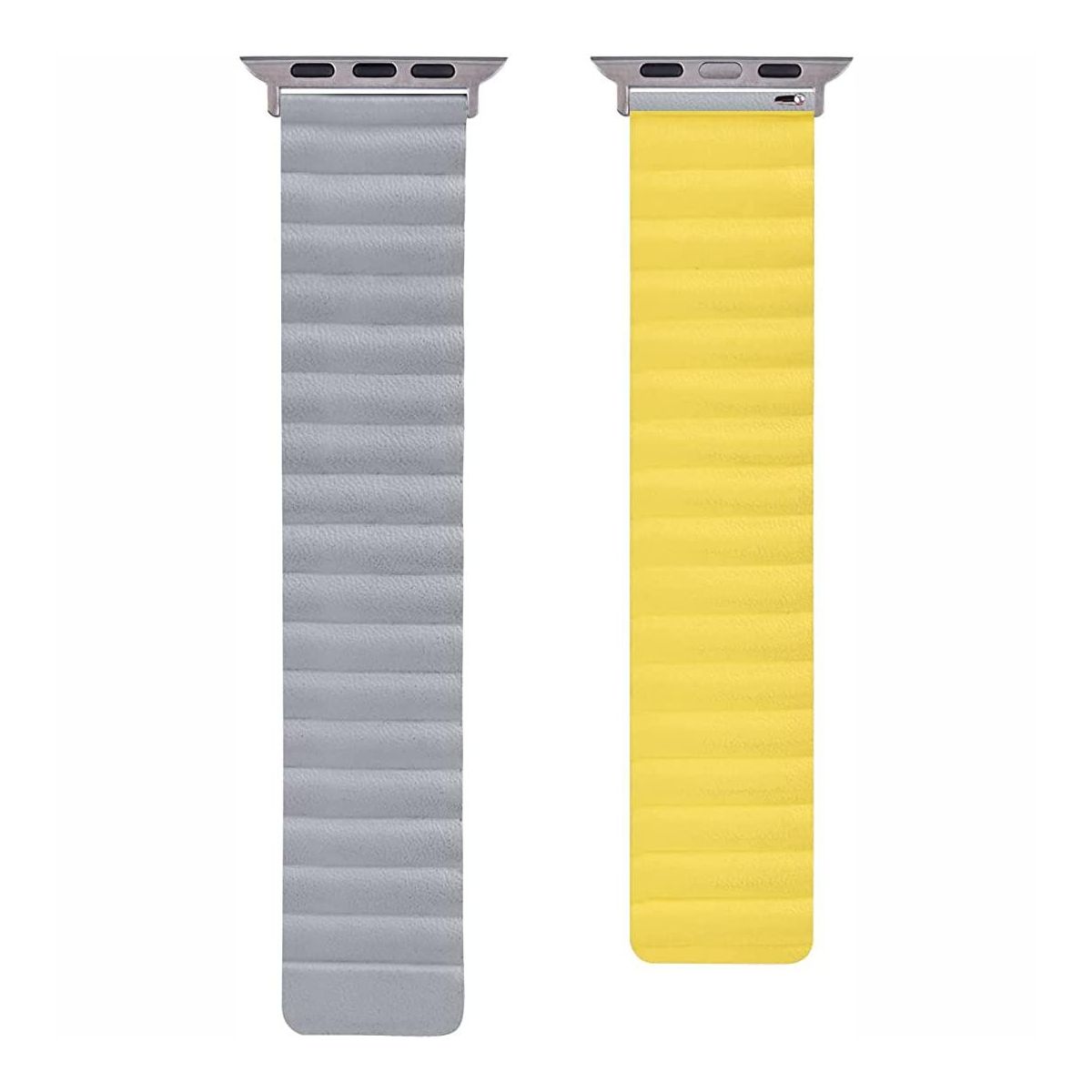 Reversible magnetic Leather band for Apple Watch Series 8 7 6 5 4 3 2 1 and SE. Magnetic strap is made Genuine Leather, which will help to hold your iWatch secure with clasp. The replacement strap made of high quality leather which is lightweight, wear-resistant and scratch-resistant, soft and comfortable. Soft leather material provides comfortable and cool feeling for your wrist. Special design for Apple Watch: New stylish design without buckle or hook. Two part of powerful magnetic iWatch straps hold together tightly which allows wearing your Apple Watch easily and quickly. The high quality genuine leather materials makes it anti-scratching and not easily damaged.