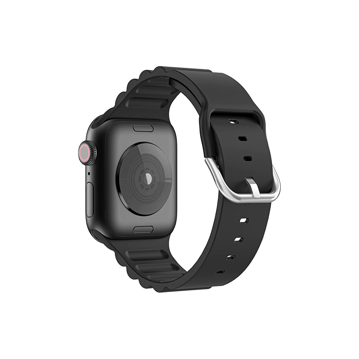 Worryfree Gadgets Silicone Wavy Bands for Apple Watch 38/40/41mm 42/44/45mm Sports iWatch Band Series 8 7 6 5 4 3 2 1 & SE - 38/40/41mm - Black