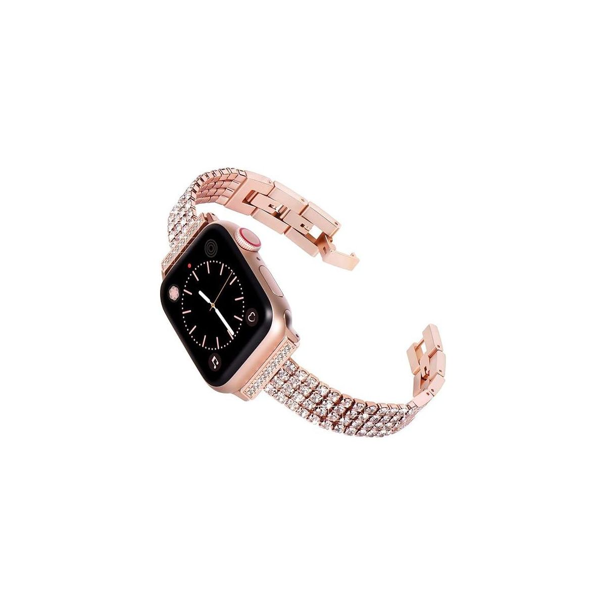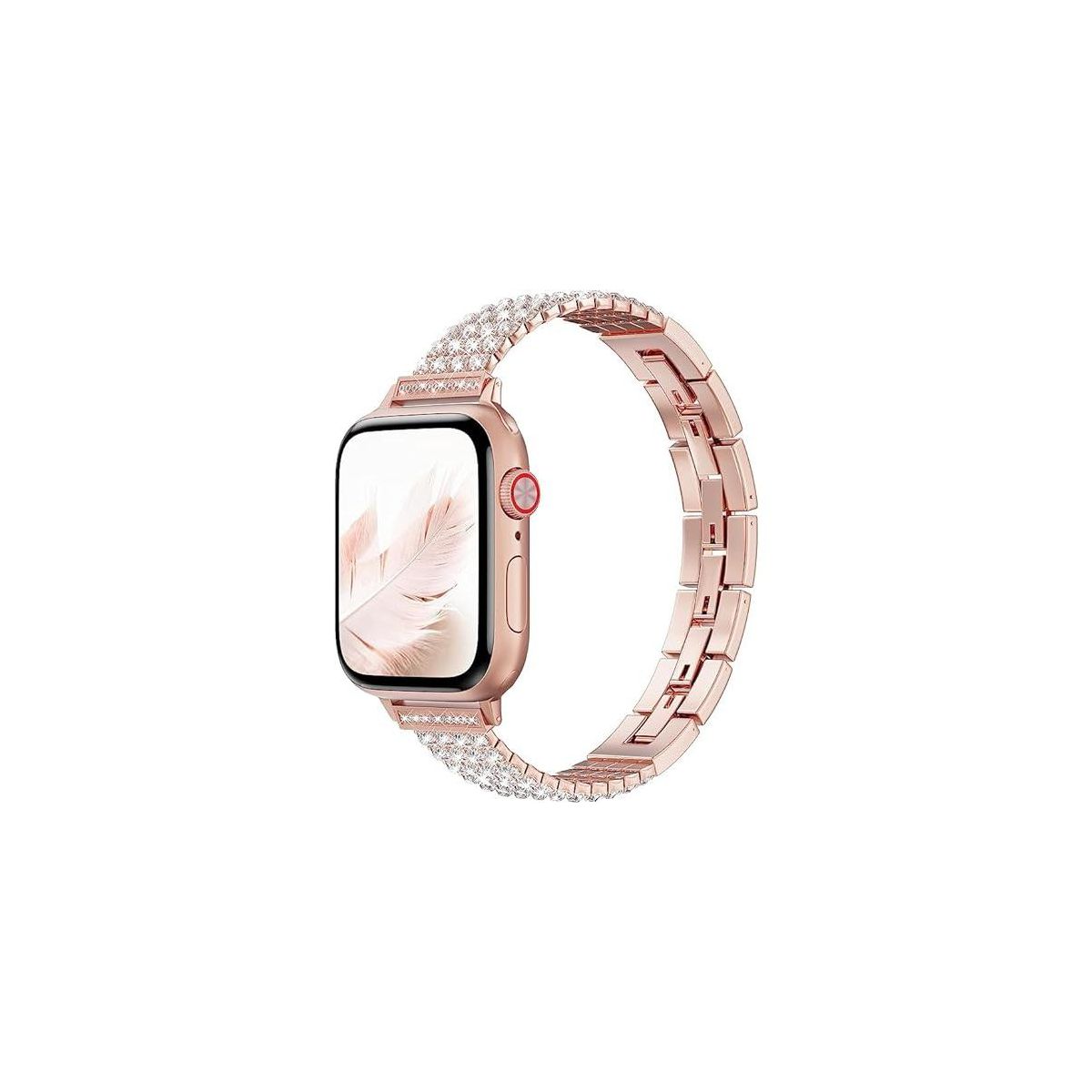 Worryfree Gadgets Slim Metal Band for Apple Watch 38/40/41mm Bling Rhinestones, Rose Gold