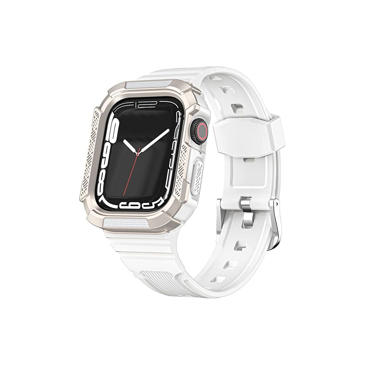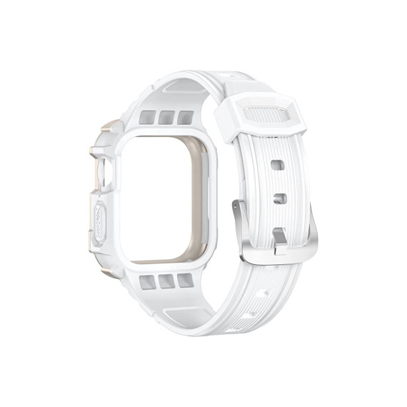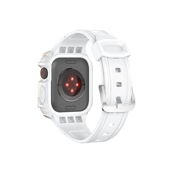 Worryfree Gadgets TPU Band with Protective Bumper Case for Apple Watch 40mm 41mm 44mm 45mm - 40mm/41mm - White-Silver