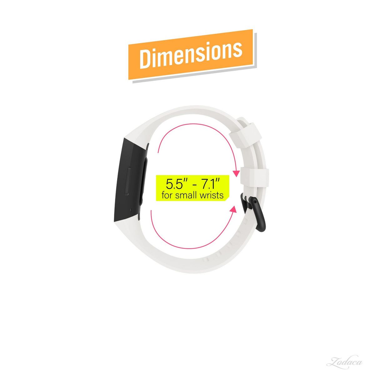 Upgrade the look of your Fitbit Charge 3, Fitbit Charge 3 SE (Small), or Fitbit Charge 4 Fitness Tracker using this fitness tracker watch band replacement from Insten. Made of durable silicone and polycarbonate plastic, it is resistant to sweat and water, making it great for use at the beach or swimming pool. Installation is easy. Simply remove the old watch band from your Fitbit fitness tracker, then install this white watch band replacement. Designed to fit smaller wrists, it can be adjusted to fit wrists ranging from 5.5 to 7.1 inches in circumference. To measure your wrist size, wrap a piece of string around it, then measure the string from the end to the point where it crosses over the end using a ruler or tape measure. These fitness tracker replacement bands are white with a black buckle. Please note that the Fitbit fitness trackers pictured in the images are NOT INCLUDED.