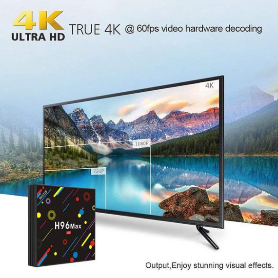 - EstgoSZ H96 Max H2 TV BOX with 4G DD3, 32G EMMC, powered by latest Android 7.1 system and RK3328 Quad Core CPU and Penta-Core Mali-450