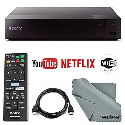 Sony BDP-S3700 Wi-Fi Blu-Ray Disc Player with HDMI Cable + Remote + FiberTique Cleaning Cloth