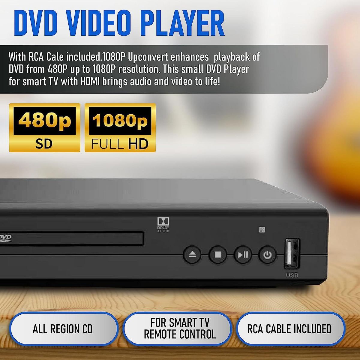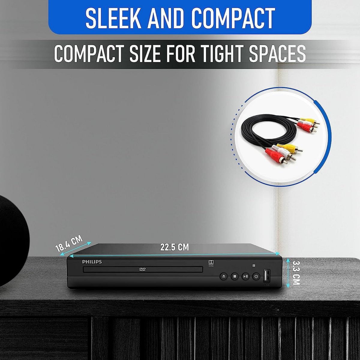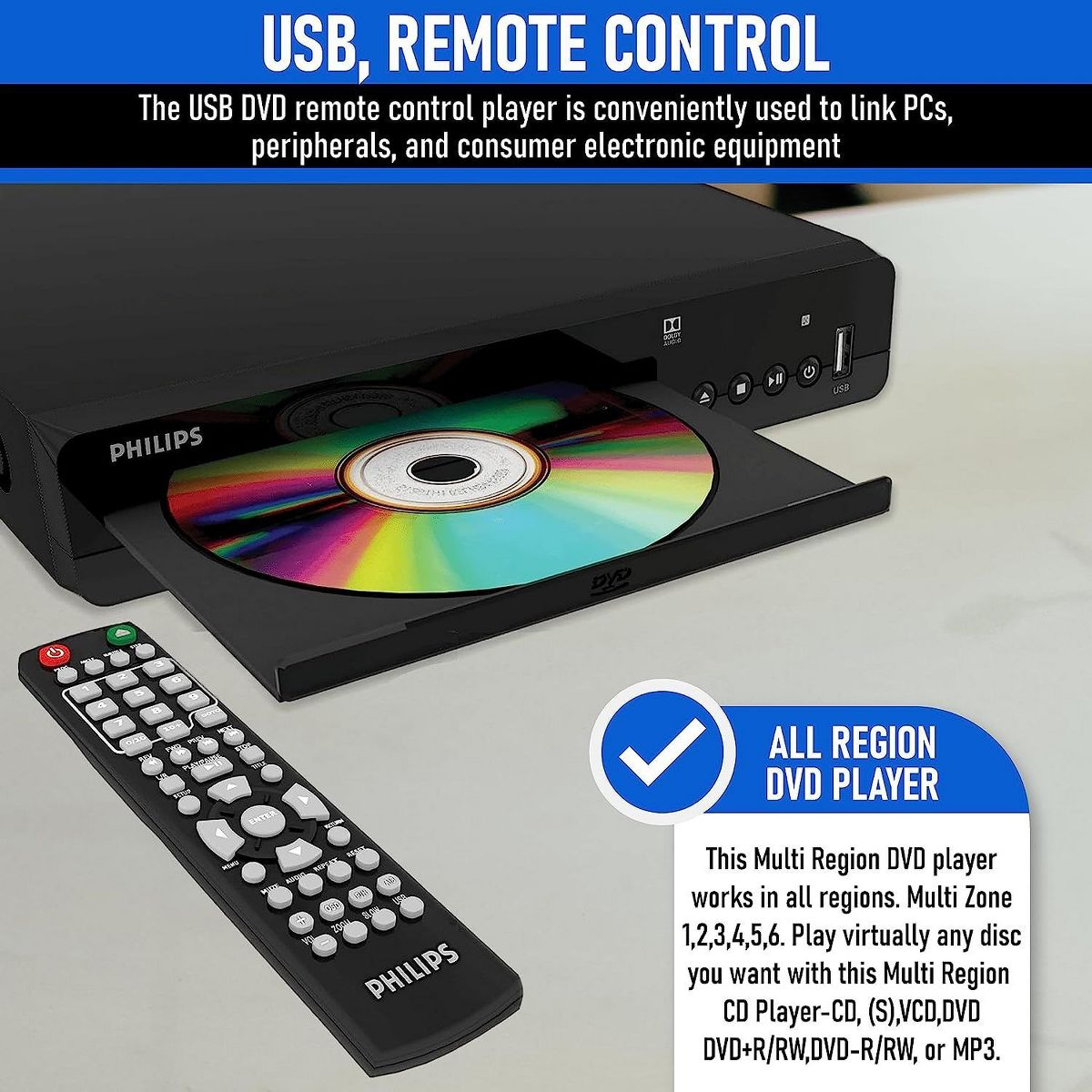 PHILIPS All Region DVD Player, USB & Disc Playback, DVD/CD/MP3, Remote, RCA, PAL/NTSC, Home Stereo System