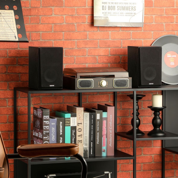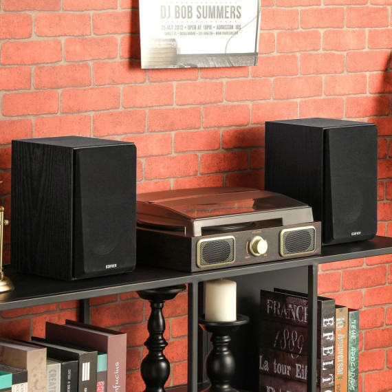 The Edifier® R990BT 2.0 Active Multimedia Speakers elevate your audio experience with Bluetooth® v5.4 audio receiver for seamless audio streaming. Each speaker cabinet contains one 1-in. silk dome tweeter and one 4-in. long-throw mid-low driver. The MDF cabinet effectively reduces resonance and distortion, ensuring accurate reproduction of audio input. The dual RCA inputs allow you to connect 2 devices simultaneously, eliminating the need to constantly plug and unplug. The digital amplifier is capable of driving 12 watts to each of the stereo pair and providing DRC (dynamic range control). With a total output power of 24 watts RMS, the speaker pair can produce sufficient sound to fill a medium-sized room.