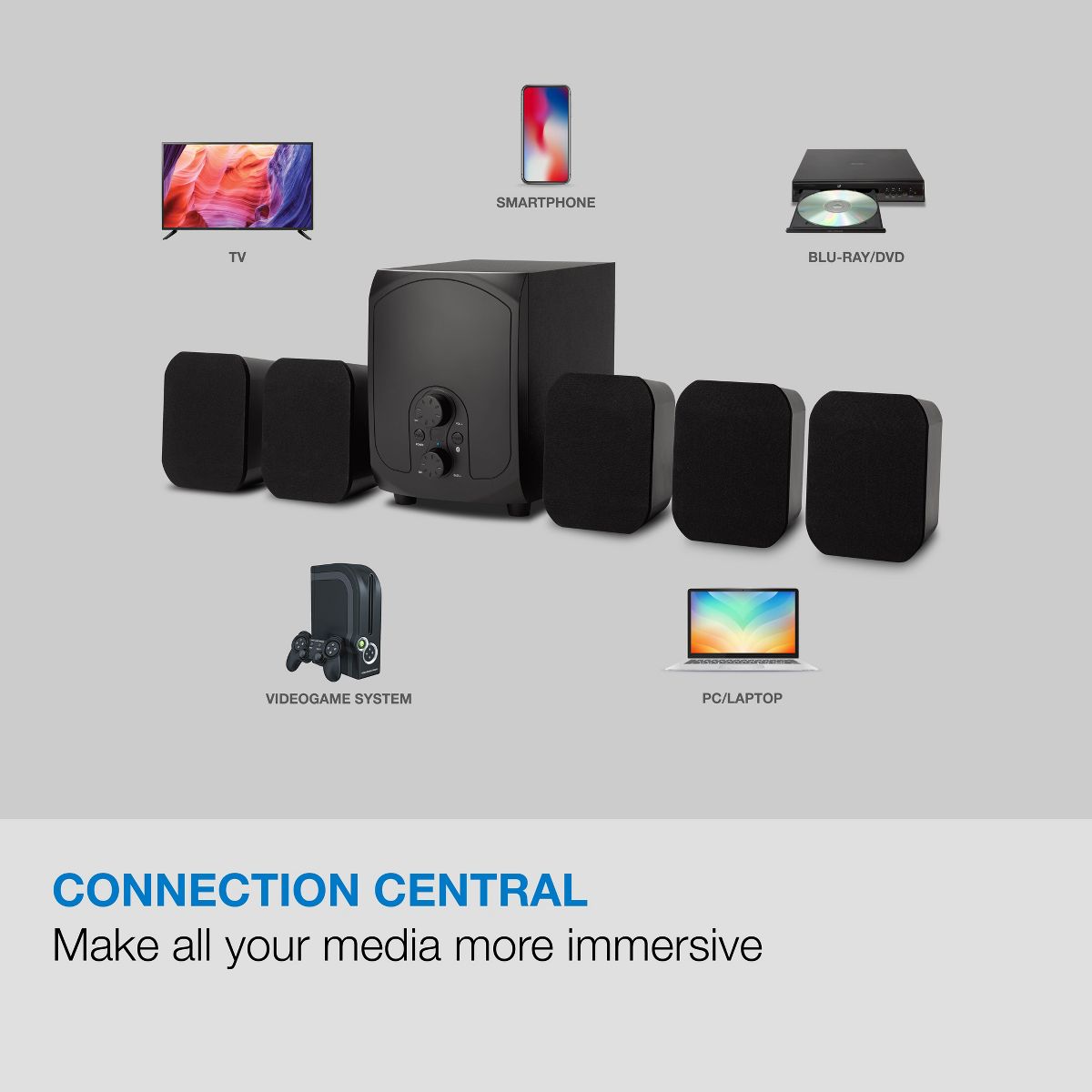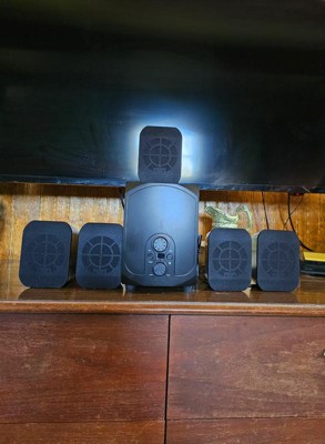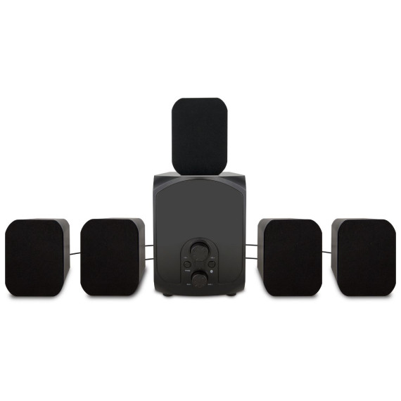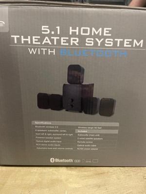 Complete your home theater experience with this 5.1 speaker system. Five satellite speakers and a powerful subwoofer deliver cinematic movies, immersive games, and exciting music concerts – all in the comfort of your living room. Bluetooth 5.0 makes it easy to blast music from a laptop, tablet, or smartphone and enjoy the same room-filling sound. The included optical cable and remote make setup and operation a breeze.