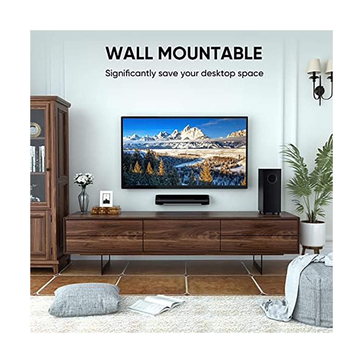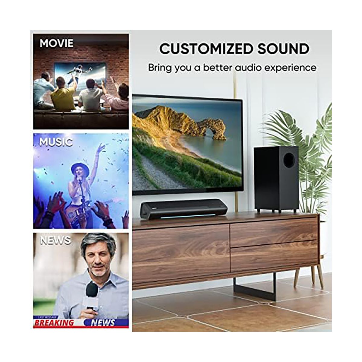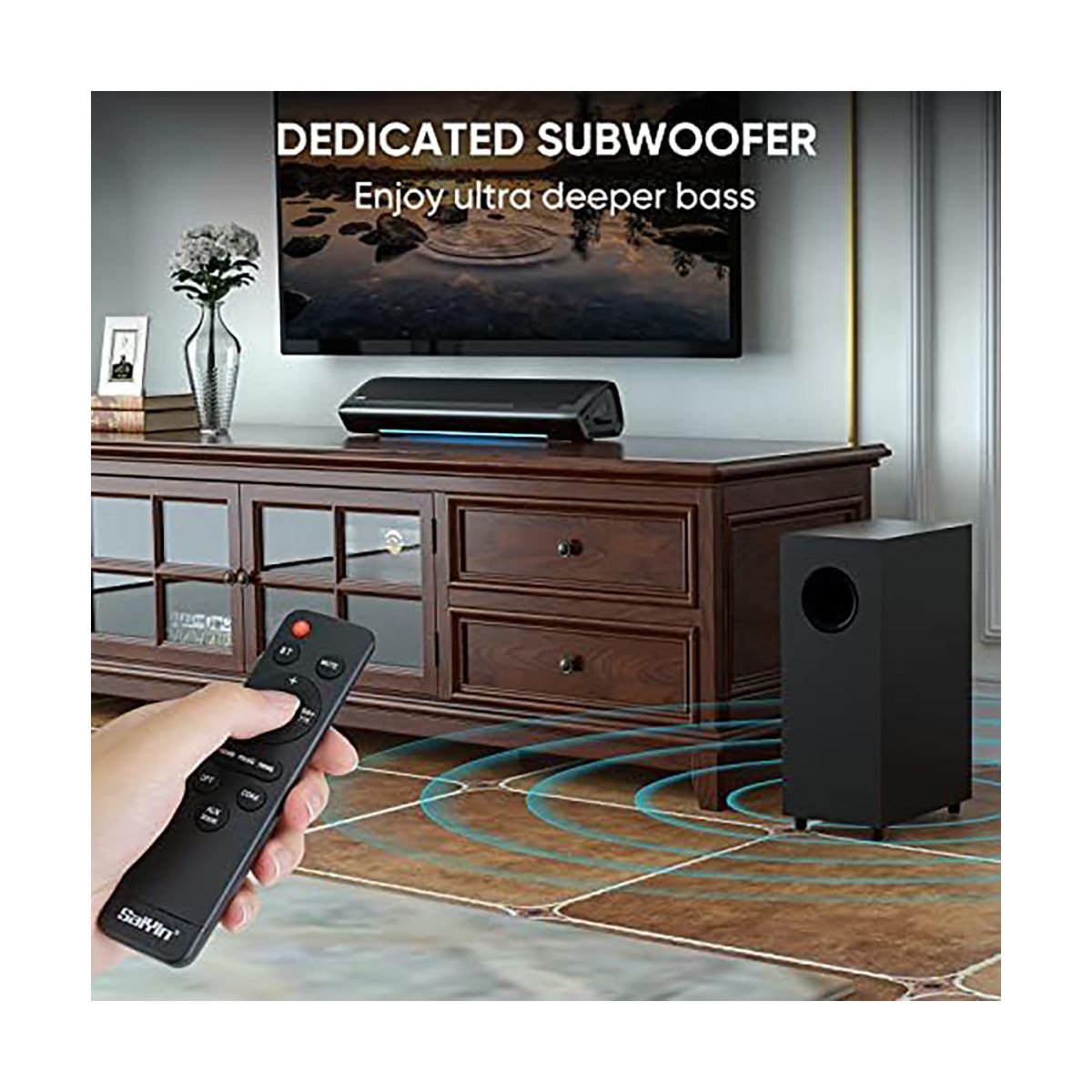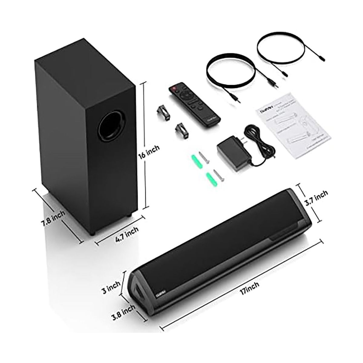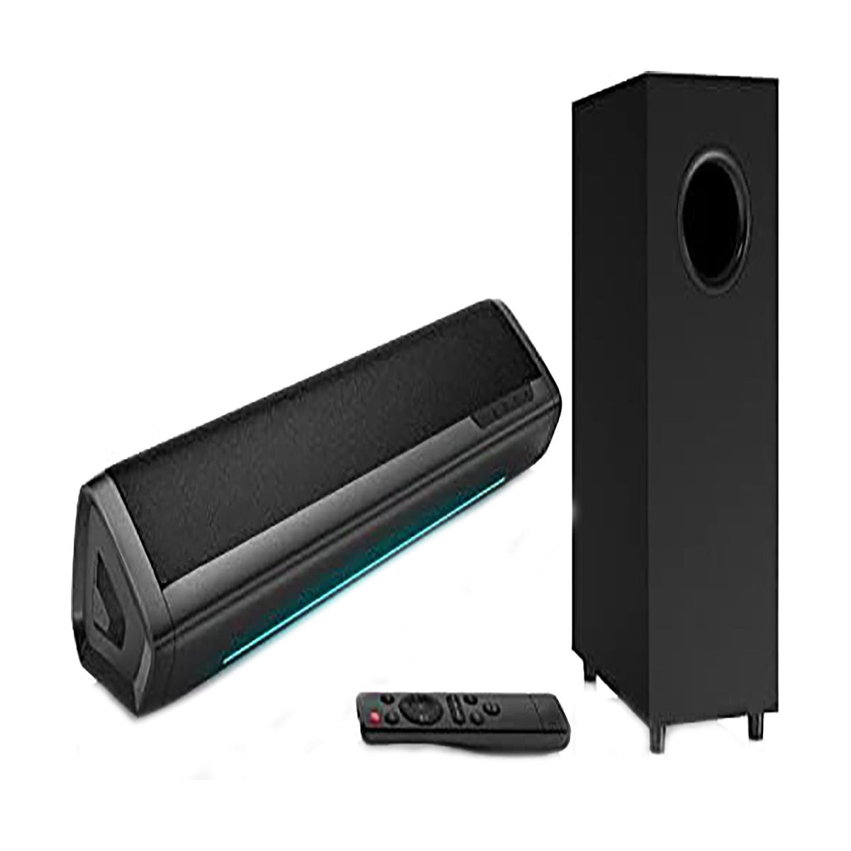 Upgrade your home entertainment with this high - performance sound system. The 2.1 deep bass soundbar and subwoofer combo deliver an immersive audio experience. The dedicated subwoofer with a large cavity produces punchy and magnetic bass, perfect for music, movies, and gaming. The soundbar features three - color LED lights to easily identify connection modes, and a volume progress bar for clear volume indication. You can adjust it to three different equalizer modes according to your viewing needs. It supports both wireless and wired connections, with free cables included. The package comes with all the necessary accessories for a quick setup. Compatible with Fire TV remote and can provide additional Roku - compatible remotes. Enhance your TV viewing and gaming sessions with this versatile sound system.