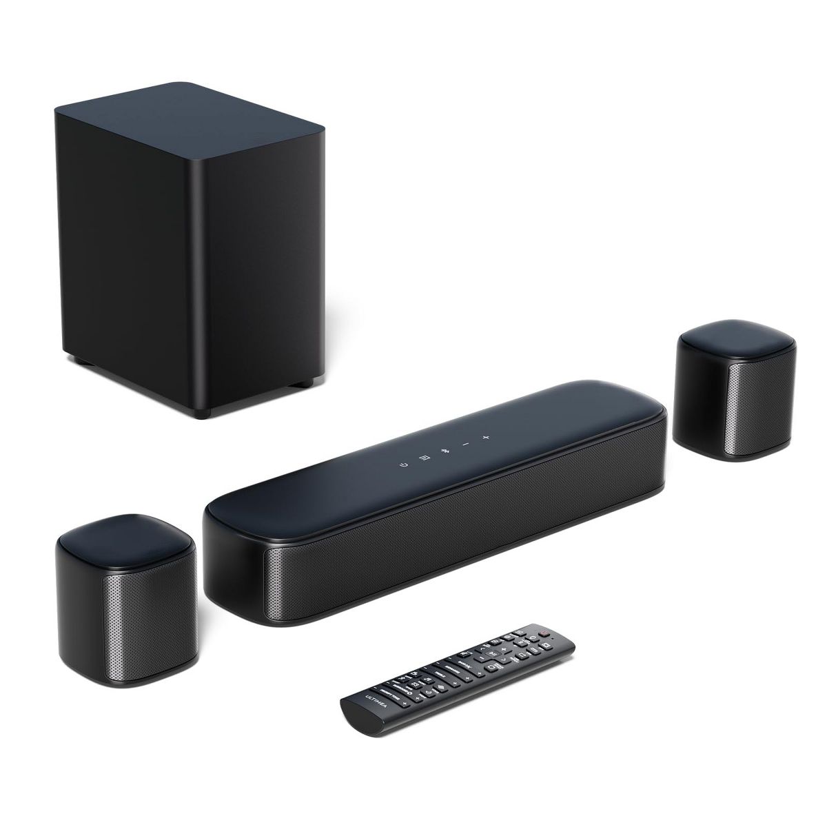 Upgrade your home theater experience with this 5.1ch sound bar system. It features 3 main channels and 2 surround speakers, powered by SurroundX technology for 99.99% audio detail precision. The AI fine - tunes the sound, creating a realistic virtual surround sound field suitable for spaces from 108 to 215 ft². Connect the 2 surround speakers with a cable and pair them wirelessly with the TV sound bar. The 4 - inch wired subwoofer uses advanced bass technology to produce deep, resonant bass, intensifying action scenes. Control the sound bar via a smart app, where you can switch EQ settings, adjust bands and matrix. There are 121 preset EQ matrices for 4 sound profiles and 6 specially designed EQ modes. With the app's "Customize" feature, you can create a personalized sound profile. Peak power reaches 250W, offering an immersive audio experience for movies, music, games, and more.