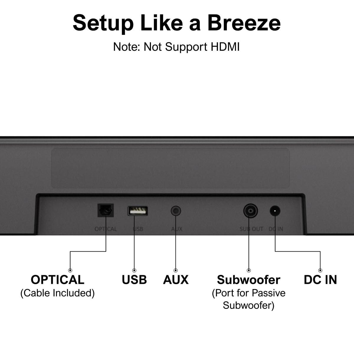 Itopfox 5.1ch Sound Bar with Subwoofer, Home Theater Virtual Surround Sound System for TV, App Control, 2 Surround Speakers, Opt/AUX, Peak Power 250W