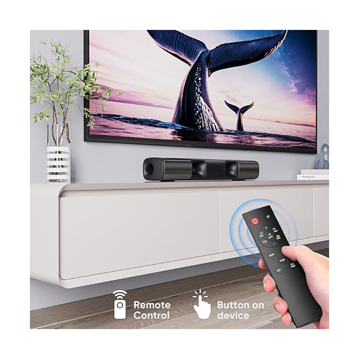 Upgrade your audio experience with this 50W powerful soundbar. It's perfect for smart TVs, PCs, and projectors. Despite its compact design, it features 2 tweeters and 2 built - in woofers, delivering rich bass and crisp treble. The upgraded vocal enhancement technology makes every dialogue clear and warm. With 3 EQ sound effects (movie, music, and news), it optimizes audio for different content. Bluetooth 5.3 ensures a stable connection with various devices. You can place it on a TV cabinet or wall - mount it to save space. Control it via remote or buttons on top. Additional remotes for Roku devices are available. Enjoy enhanced audio for games, movies, music, and news effortlessly.