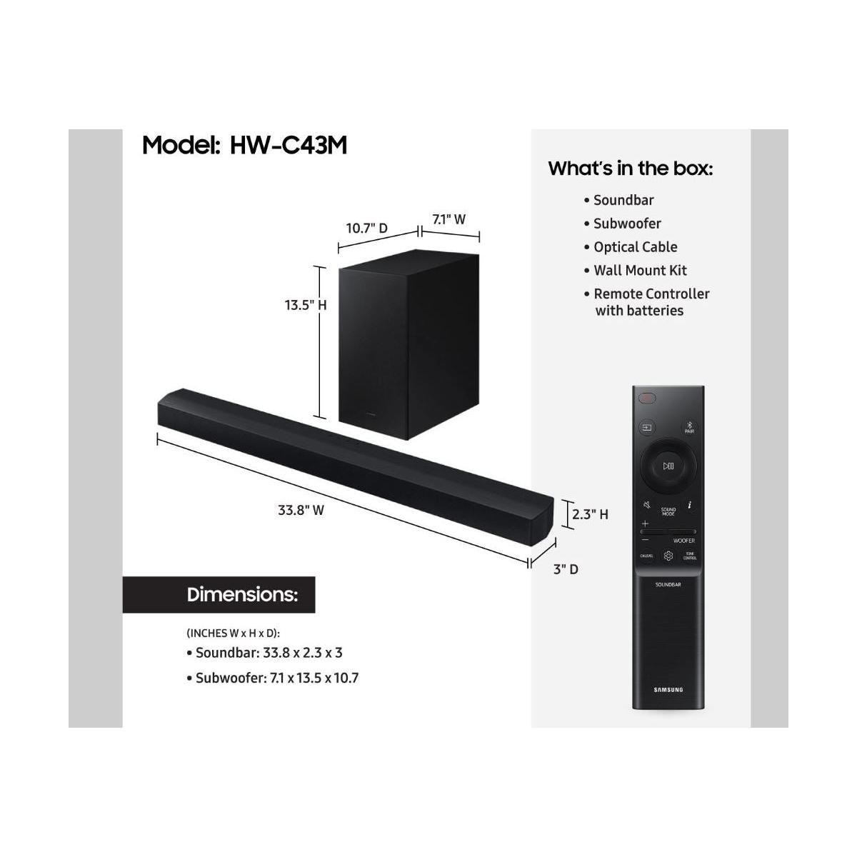 Refurbished: Samsung 2.1Ch 210W Soundbar with Wireless Sub - Black HW-C43M - Manufacturer Refurbished