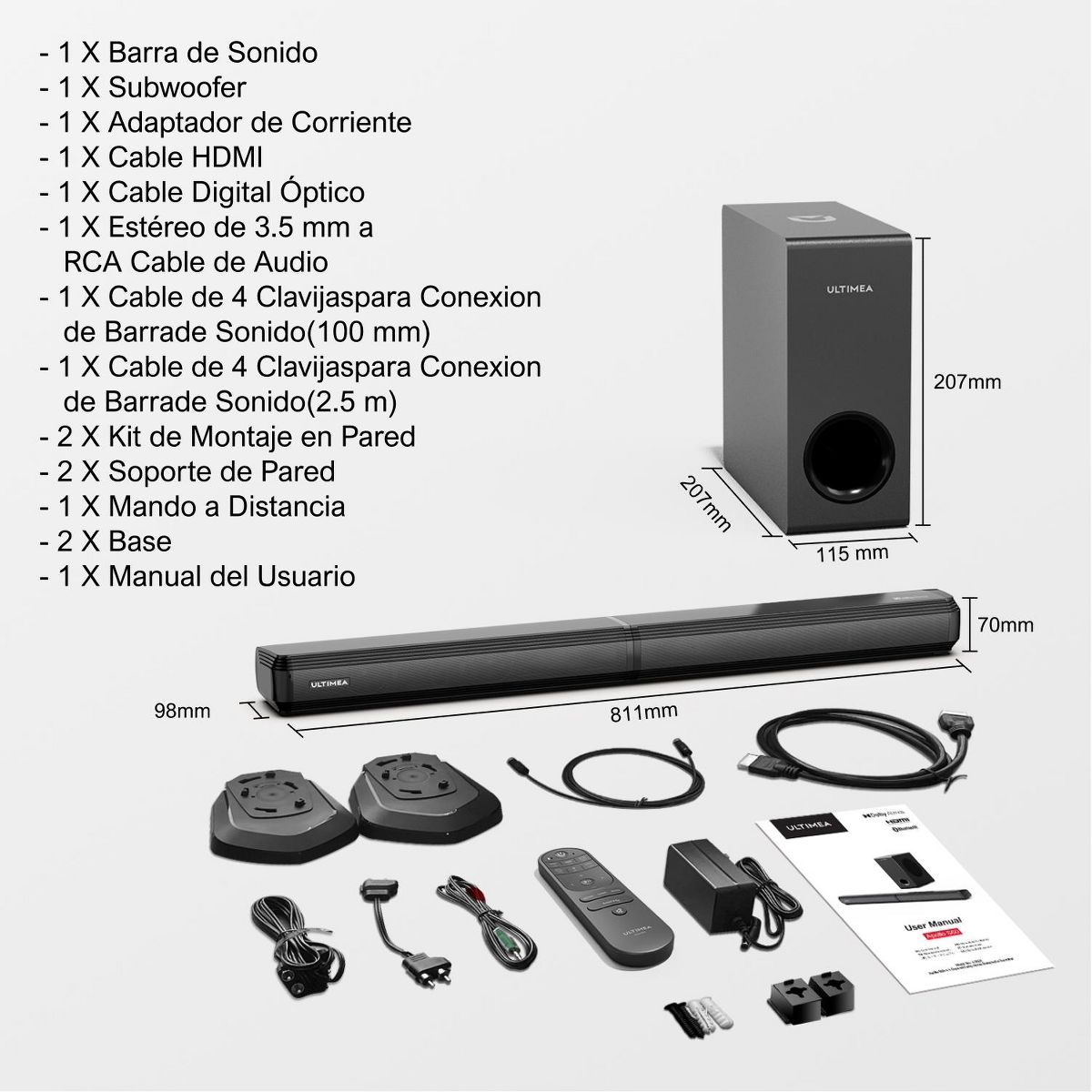 ULTIMEA Apollo S60 4.1ch Sound Bar, Dolby Atmos, Bluetooth 5.3, Subwoofer, 280W Peak Power, 3 EQ Modes, HDMI eARC