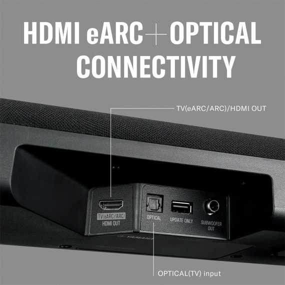 Supremely Simple ConnectionConnect the SR-B30A to your TV with just a single HDMI or optical cable. Featuring HDMI-CEC and eARC compatibility it lets you operate basic functions directly from your TV remote control. For even more detailed control you can conveniently adjust the volume and change sound modes with the included remote or the Yamaha Sound Bar Remote app.