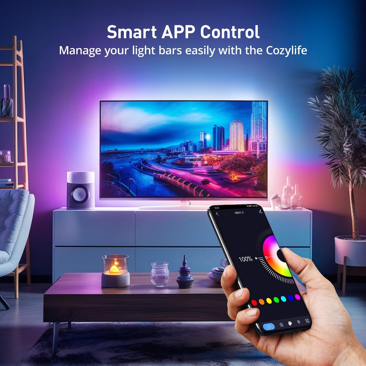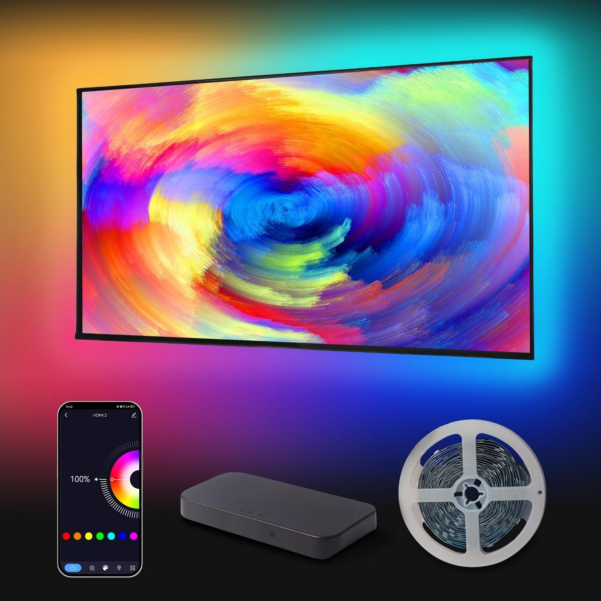 Enhance your viewing experience with Sympa's 2 Pack HDMI Sync RGBIC Smart TV Backlight. Seamlessly integrates with smart home systems for vibrant, customizable lighting.