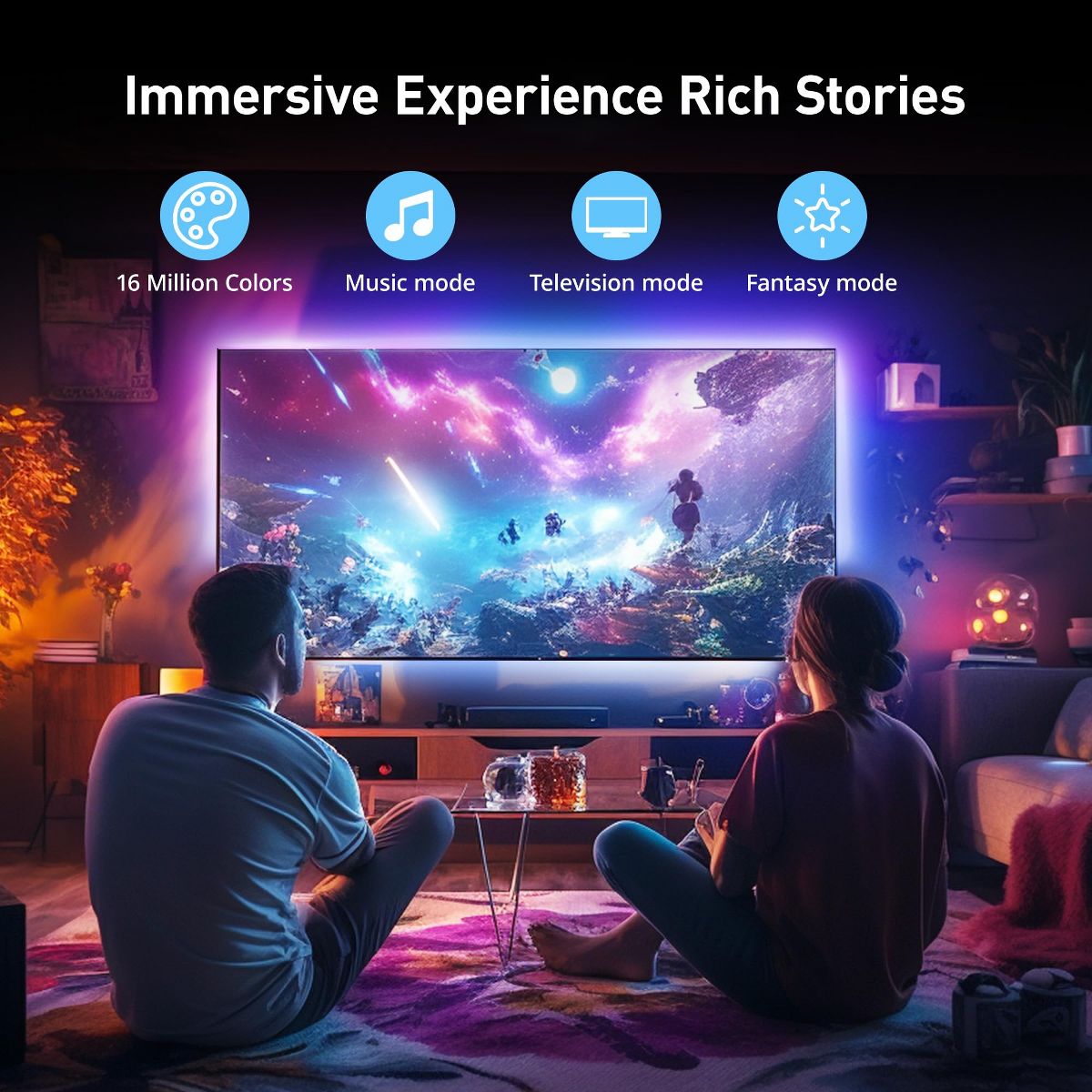 Sympa 2 Pk HDMI Sync RGBIC 55-75 Inch 16. 4ft Smart TV Backlight Led Strip Lighting Compatible with Alexa & Google Assistant, App Control- Multicolor