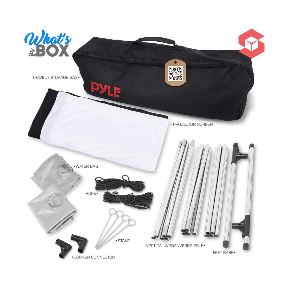 The Pyle 100-Inch Portable Outdoor Projection Screen (PRJOS100) is perfect for creating a home theater experience anywhere, indoors or outdoors. This matte white screen is designed to provide optimal color pickup and vivid image quality. Its wrinkle-resistant, foldable, and washable fabric ensures easy maintenance and durability.