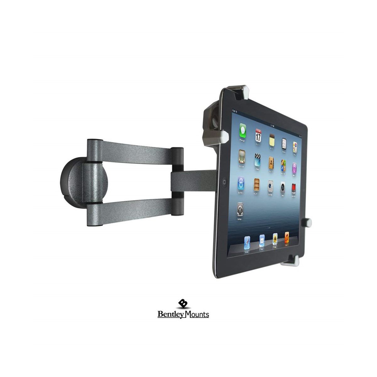 With it's swivel arm for maximum flexibility and viewing pleasure the bentley tablet mount is lightweight and easy to install. Compatible with most tablets up to 11" it also retracts to 2.25" and extends up to 13.5" from the wall, making it possible to rotate up to 360 degrees.