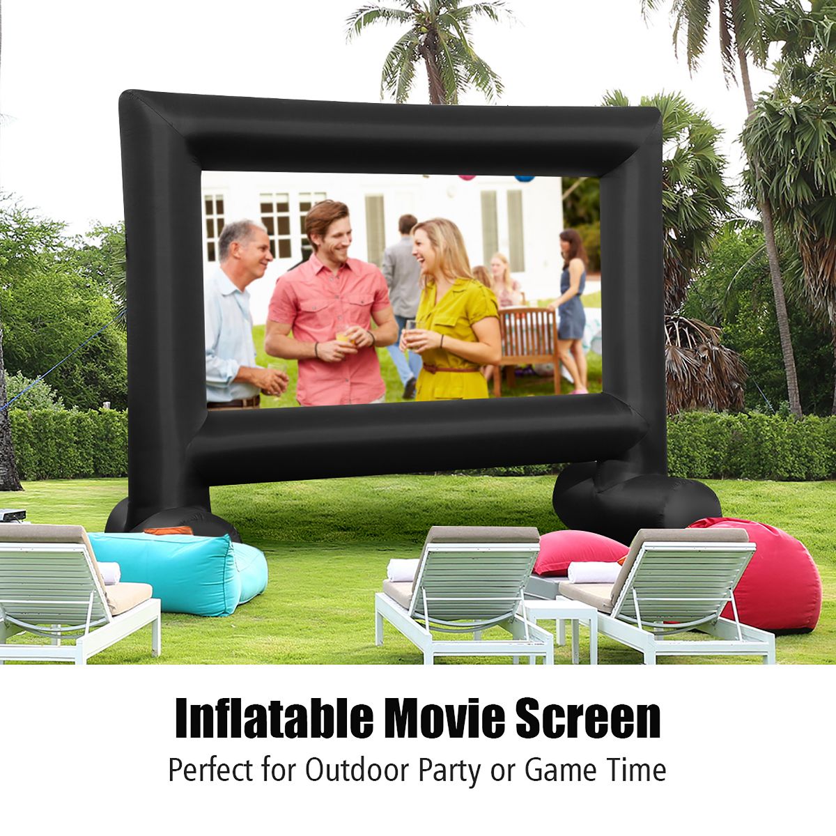 Costway 14FT Inflatable Projector Screen Projection Outdoor Home Theater W/ Blower