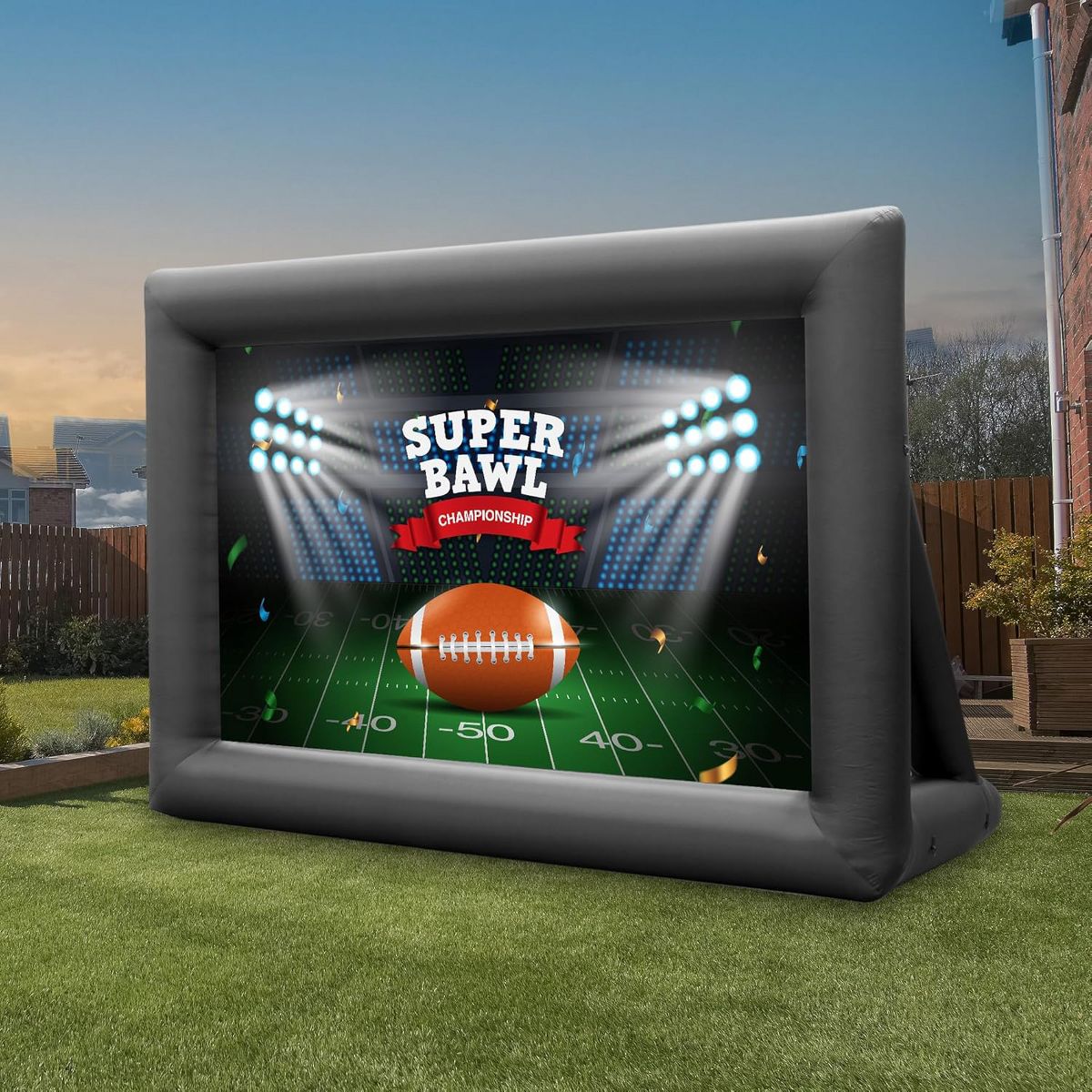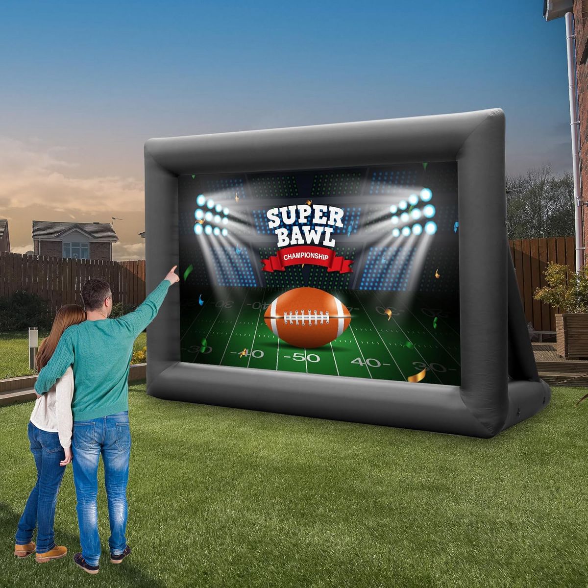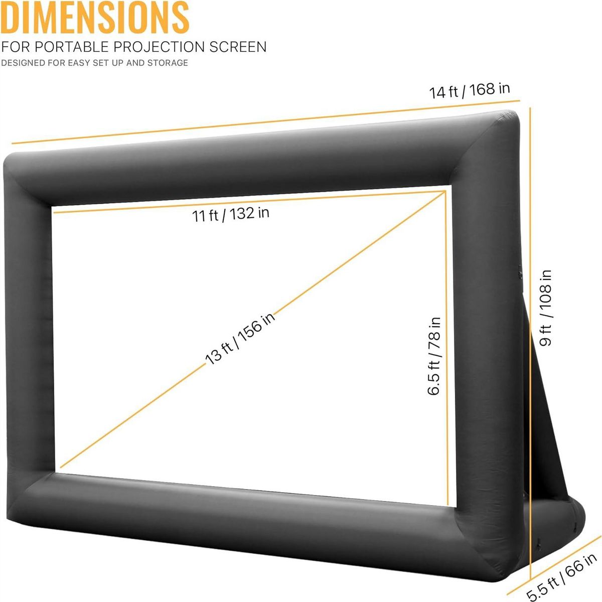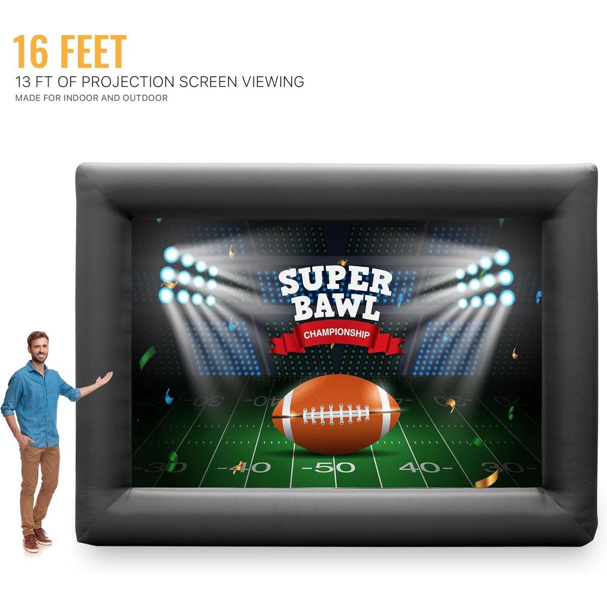 KHOMO GEAR 16ft Inflatable Outdoor Projector Screen w/ Built-in Blower – Front/Rear Projection + Tie-Downs & Bag