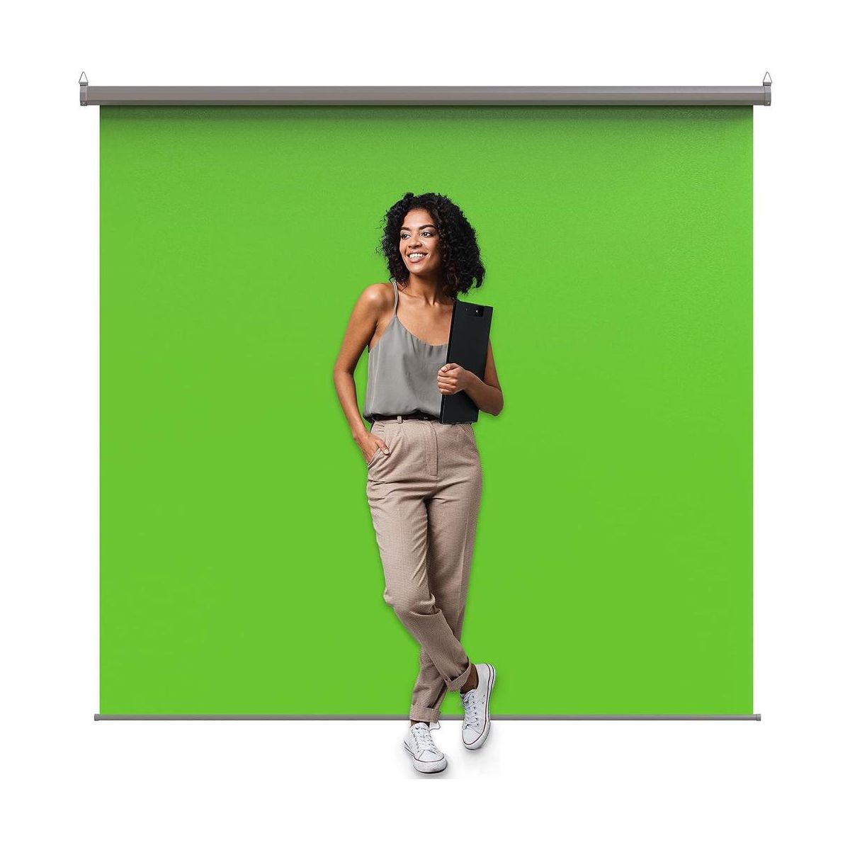 KHOMO GEAR 84"x84" Green Screen – XL Pull-Down Backdrop with Grey Frame – Portable, Collapsible for Video & Streaming