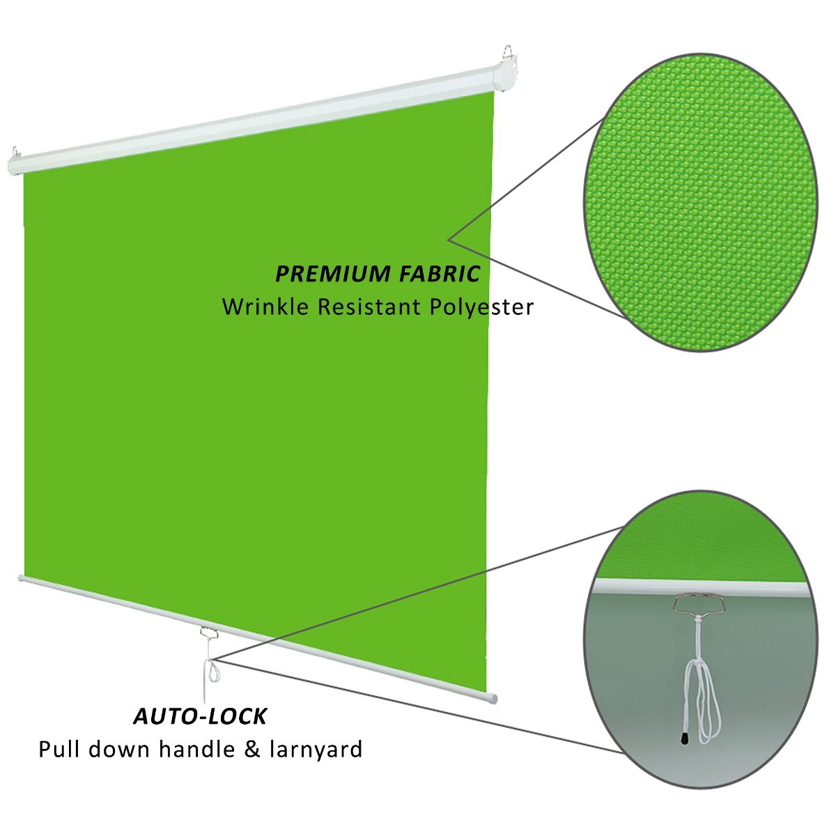 KHOMO GEAR 84"x84" Green Screen – XL Pull-Down Backdrop with White Frame – Portable, Collapsible for Video & Streaming
