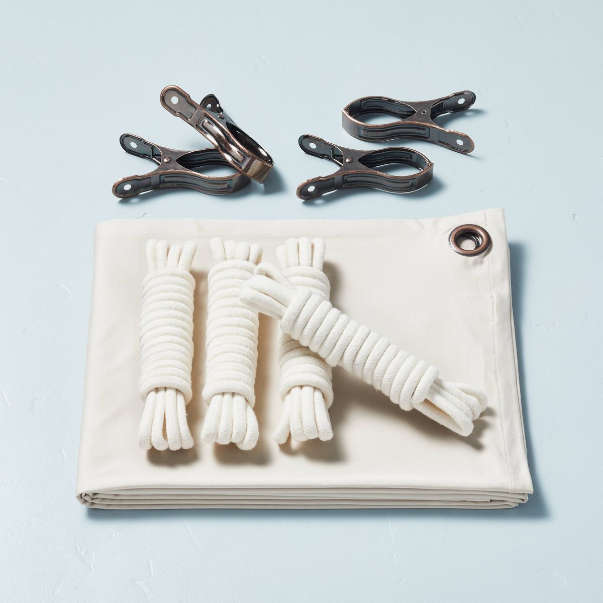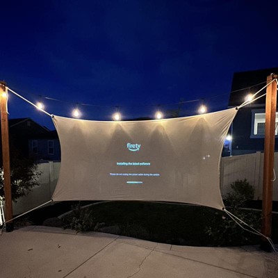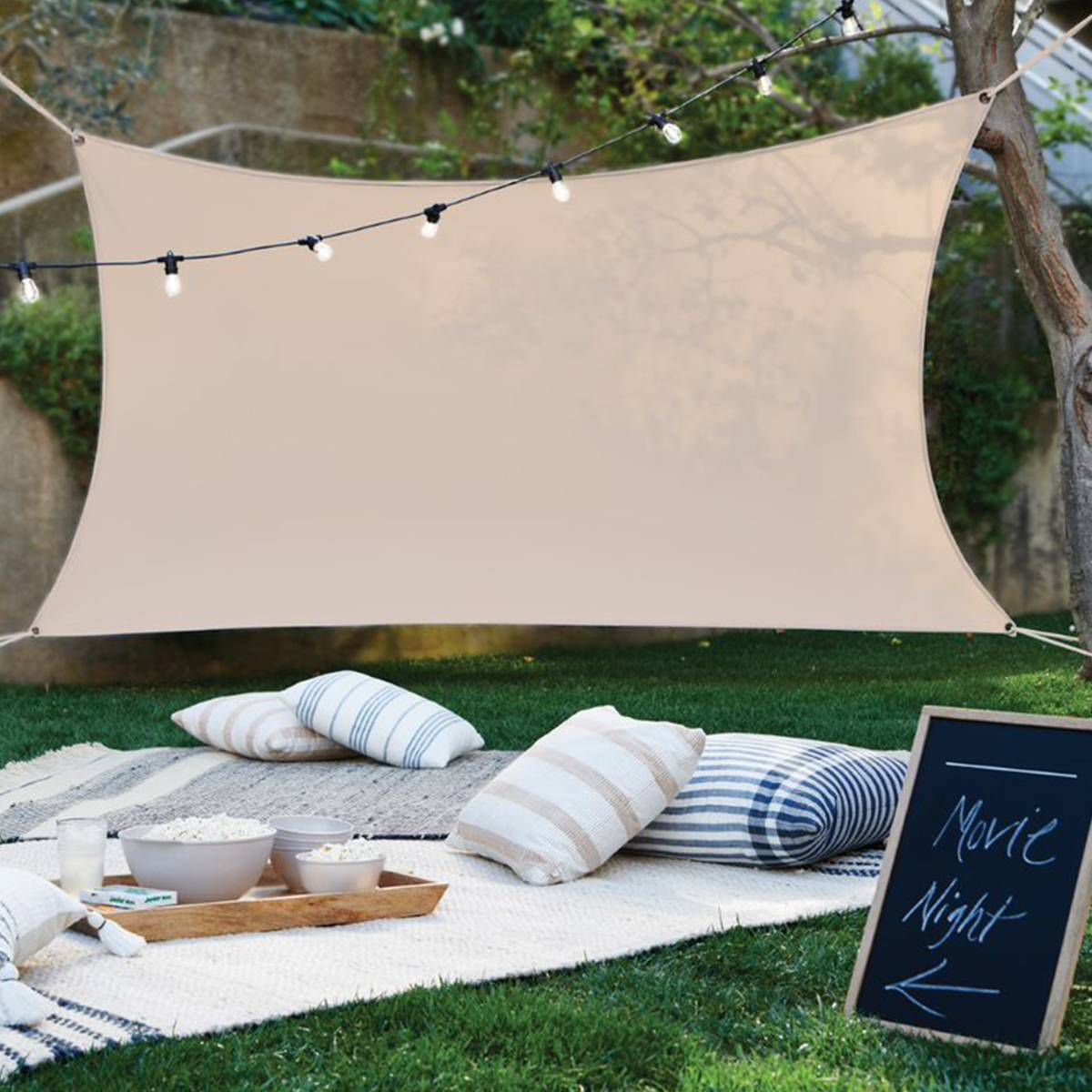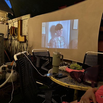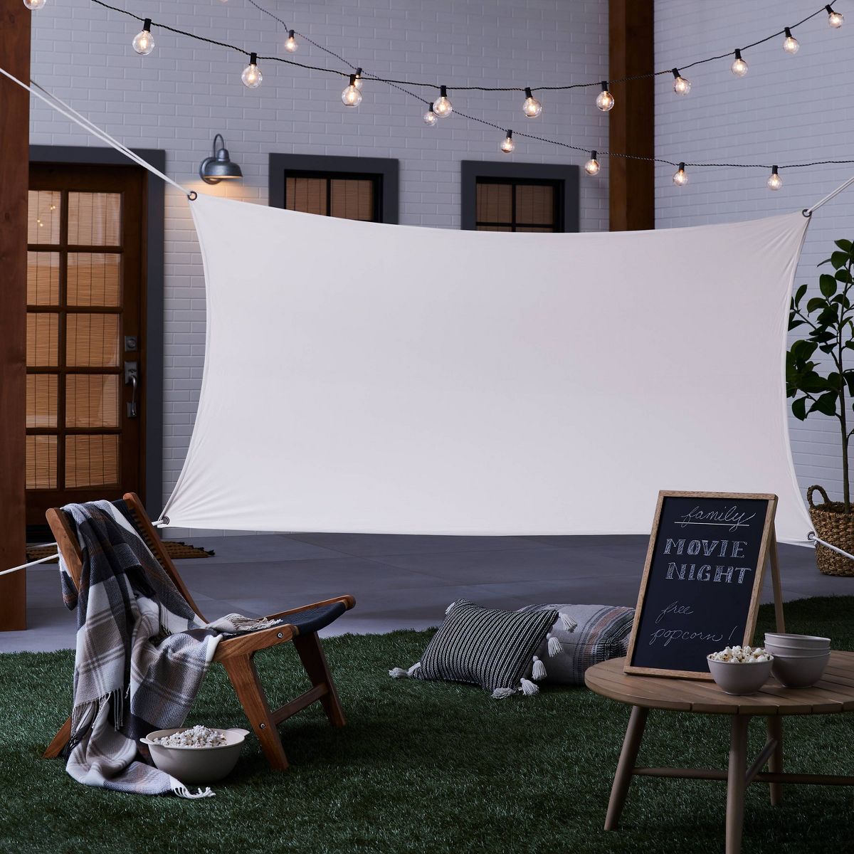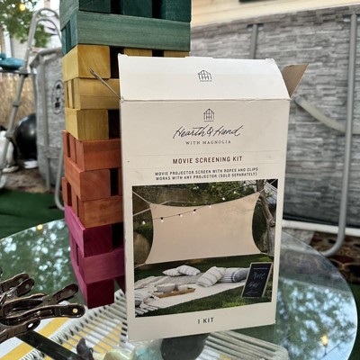 Recreate the magic of the big screen in your home or backyard with the Movie Screening Kit from Hearth & Hand™ with Magnolia. This open-air cinema screen includes a movie projector screen, ropes and clips to instantly transform your open-air space into a movie theater. Compatible with all projectors, the projector screen features metal grommets at each corner to easily pass the included ropes and fasten it to the poles in the ground.