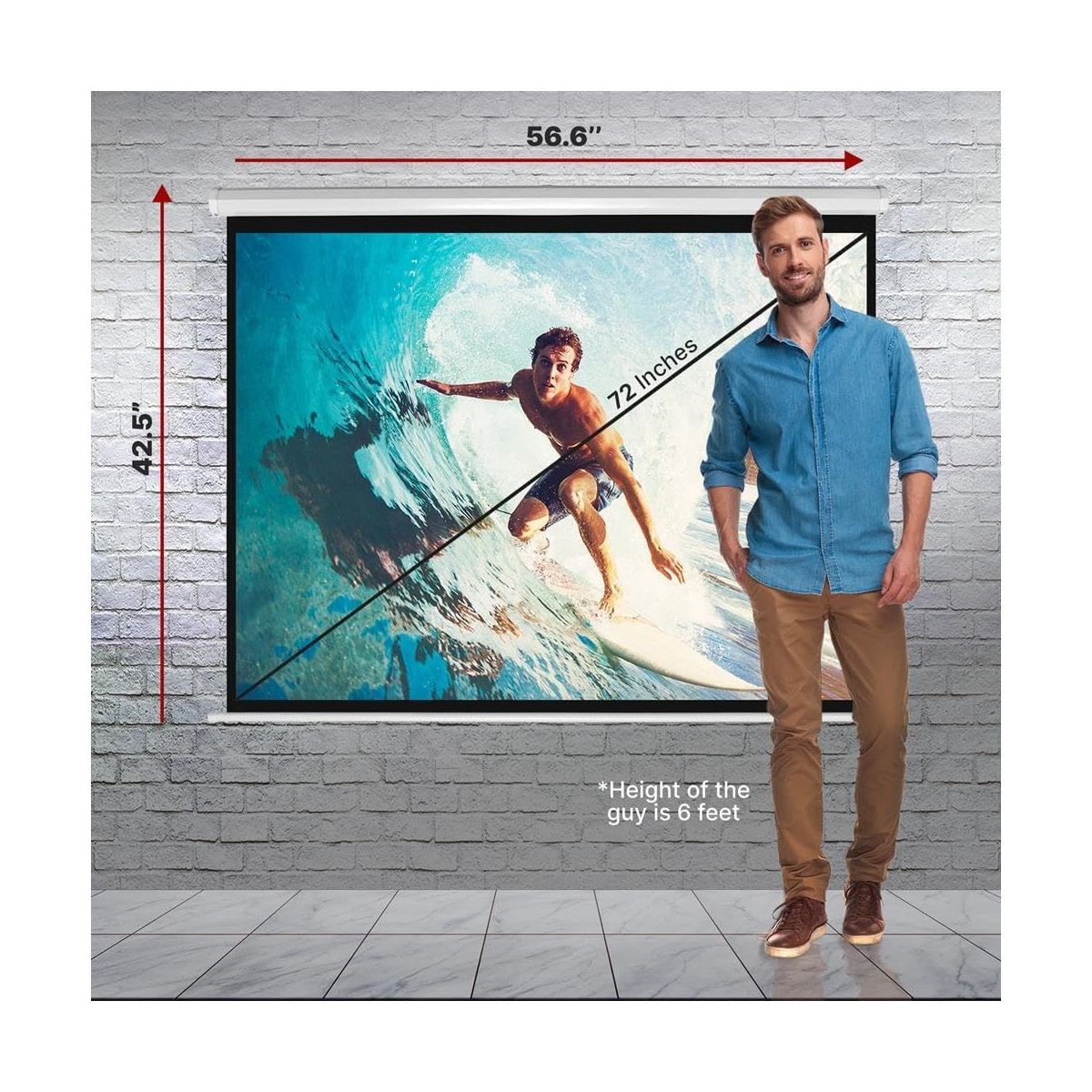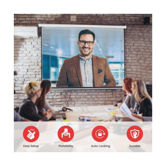 Pyle 72-Inch Roll-Down Manual Projector Screen - Matte White, Adjustable Height, Black Masking Border, Ceiling or Wall Mount