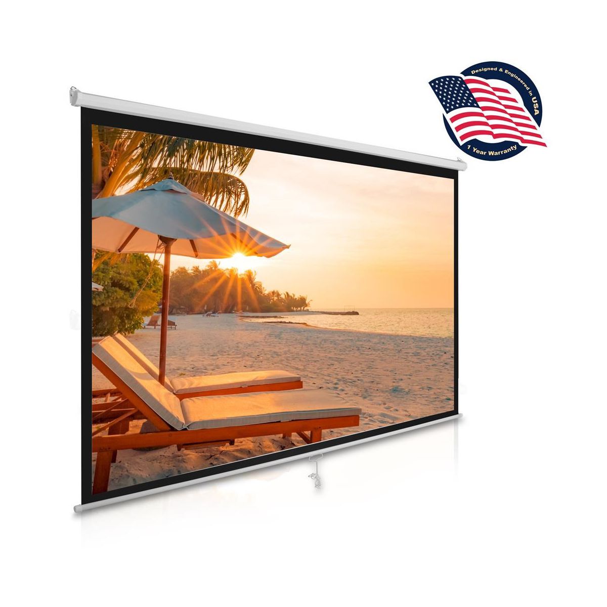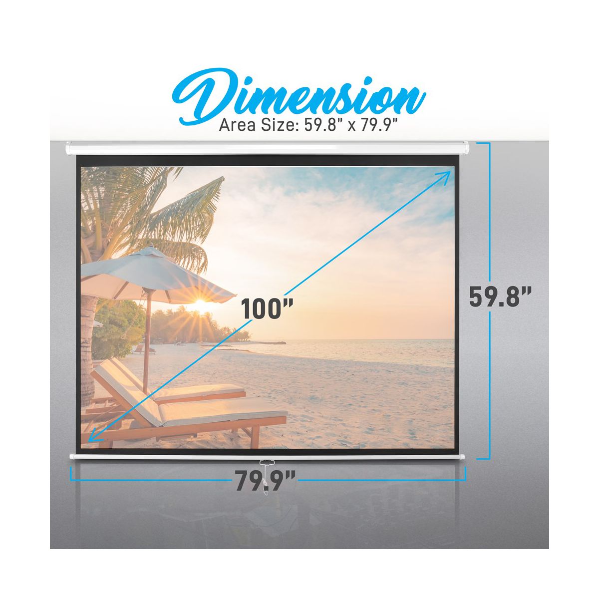 Pyle PRJSM1006 Universal 100-Inch Roll-Down Pull-Down Manual Projection Screen - Matte White