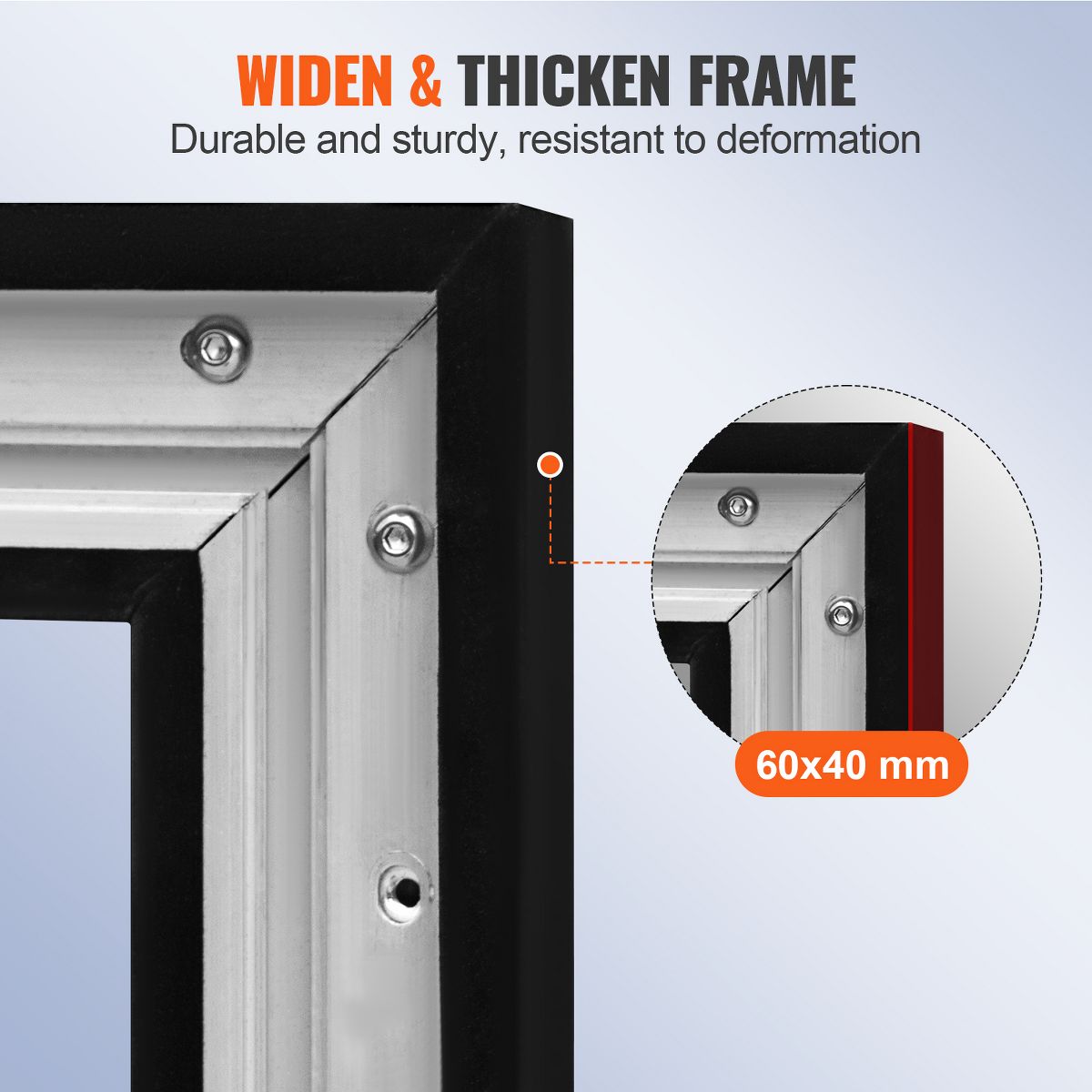 【DURABLE FRAME & EASY CLEANING】- Thick aluminum alloy frame is covered with black velvet. Accept water washable of the screen for cleaning, but machine-washing is forbidden.