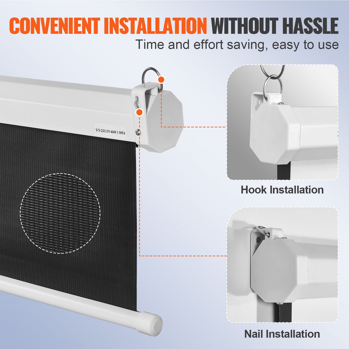 Hassle-Free Hanging: We understand that installation can be a challenge, so our projector pull down screen arrives fully assembled. Simply hang it on the wall, and it's ready to use - no installation fuss, just plug and play.