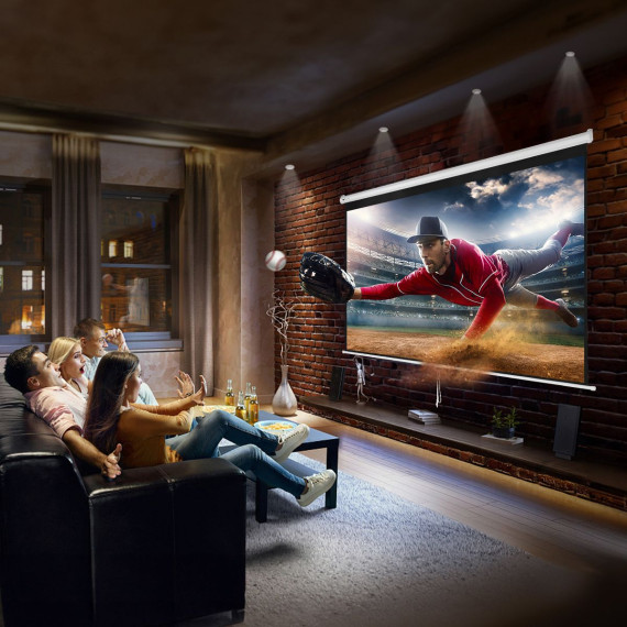 Expansive Viewing Angle: With its wide-angle design, our retractable projector screen provides clear visuals for the audience, regardless of their position. This enhances the flexibility of your viewing experience, turning every seat into the best one in the house.
