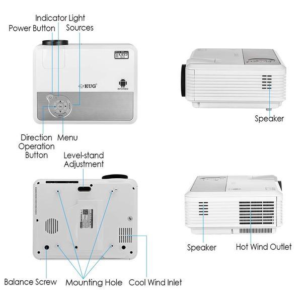 I have never written a review. This is a review for the EUG Full HD 1080p 3600 Lumens LCD LED I put the make and model or full discreption because sometimes the reviews that amazon has are not for the right product it might be the right brand but not the right model you have to be really careful reading reviews it drives me crazy. This was my 2nd Projector from Amazon. Let me give some history. I was builing a theater room in our basement I was going to wait a for the 80and85 in TVs to come down in price I was never a fan of projectors but a friend of mine had just replaced his old projector with a new LED projector and talked me into trying one out I couldnt believe how affordable these new projectors are. March 2016 from Amazon I first bought a projector that was 2800 lum with 1500:1 ratio supported 1080p for $170 along with a $30 100inch screen. It was better than I expected. I was sold on the projectors. I was not going to worry about trying any more projectors. I will admit Im kind of picky about picture quality. The more I watched and adjusted, I just couldnt quite get the darks adjusted the way I like them even though the overall picture quality was great for $170. I just wanted a little better contrast. In Dec 2016 I was curious and looked again and found this one the EUG Full HD 1080p 3600 Lumens LCD LED Its specs were a little better than mine even though it was a different brand I could tell it was the same projector just under a different brand. I decided to try it out and yes it is just like my first one I even used my old remote. This projector was more than double the price of my first projector and that doesnt mean it was double the quality But they had deffantly updated the electronics dark contrast and even the colors were better and a little sharper. I am very happy with this purchase. I wont upgrade until they come out with a 4KLED projector. Just a few helpful important side notes and there are pros and cons to everything. The pictures were taken with my note 4 and the projector is better than the pictures I posted. It is important that you know exactly how your going to be using a projector if you need to use it in a well lighted room LED projectors the darker the room the better the picture. When I was looking for a projector I was reading that the keystone adjustment make the picture blurryg the more you have to adjust it with alot of these cheaper LEDs I made sure that when I hung my projector that I wasnt going to have use the keystone adjustment, and yes is does distort the picture using the keystone adjustment. I also read that the screen size is totally dependant on how far away or close your projector is. So I hung my projector exactly were it needed to be for a 100inch screen. Yes you can here the fan but I am watching it with a home theater sound system I do not notice it when Im watching a show. Also I may just be tuning it out. It doesnt bother my family the didnt even think about the noise. But yes they are kids and dont always pay attention to those kind if things. Speaking of kids one of the reasons I bought LED projector the LED light is suppose to last 30000-50000hrs. Most bulbs projectors are 3000-5000hrs. My kids leave the projector on all the time. I bought this to work with my Roku 4 and WiiU throgh an Onkio reciever and so the built in android system was not important to me in my application. We watch all our movies through our plex media server Netflix ext ext.. I dont know why anyone would want to use the speaker on a projector. Some reviewers gave this a 1 star I just dont know how this projector deserves a 1 star and yes I did purchase the projector and am using it. I understand that there may be times we may get a product that is diffective. When I bought my first projector I actually ordered 2 different brands and 1 of the 2 I ordered was defective 1of the 2 HDMI input and remote didnt work I sent it back but I didnt feel a need to total trash the product it my have been a fluke. If money is know option then Im sure you can buy a better projector. If your looking at price I dont know if I would buy an LED projector less than a $100 for a theater room all the reviews and specs I read they just werent bright enough or support native 1080P. But I if you were to buy one like my first one $150-$200 they have a great picture for the price. I didnt give the brand that I first bought because its no longer available but here is I believe one that replaced mine with similar specs and price: Excelvan CL720 Home Theater Projector (3000 Lumens,1080P Resolution ) $160 If you can spend 350 depending on your needs you cant go wrong with the EUG Full HD 1080p 3600 Lumens LCD LED. They have lots of other models as well I just dont know enough about them. Good Luck.